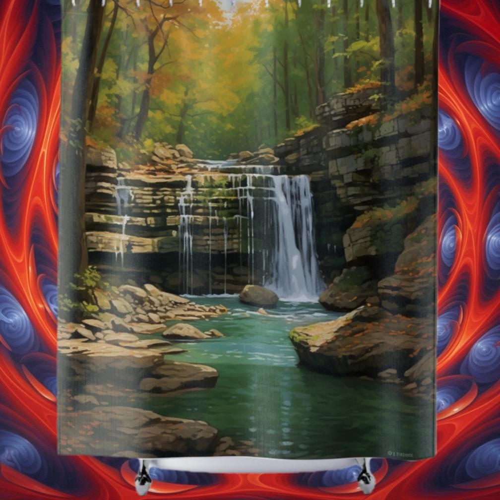 Transform your bathroom into a serene oasis with our Kentucky Creek Shower Curtain. Immerse yourself in the tranquility of nature with this breathtaking design, featuring a picturesque Kentucky creek cascading into a gentle waterfall. The vibrant hues and intricate details capture the essence of this scenic landscape, bringing the beauty of Kentucky's natural wonders to your daily routine. Crafted with high-quality materials, our shower curtain combines functionality with artistic elegance. Step into your shower and let the soothing imagery transport you to a world of serenity and relaxation. Indulge in the beauty of Kentucky's picturesque creeks every time you step into your bathroom with our Kentucky Creek Shower Curtain.