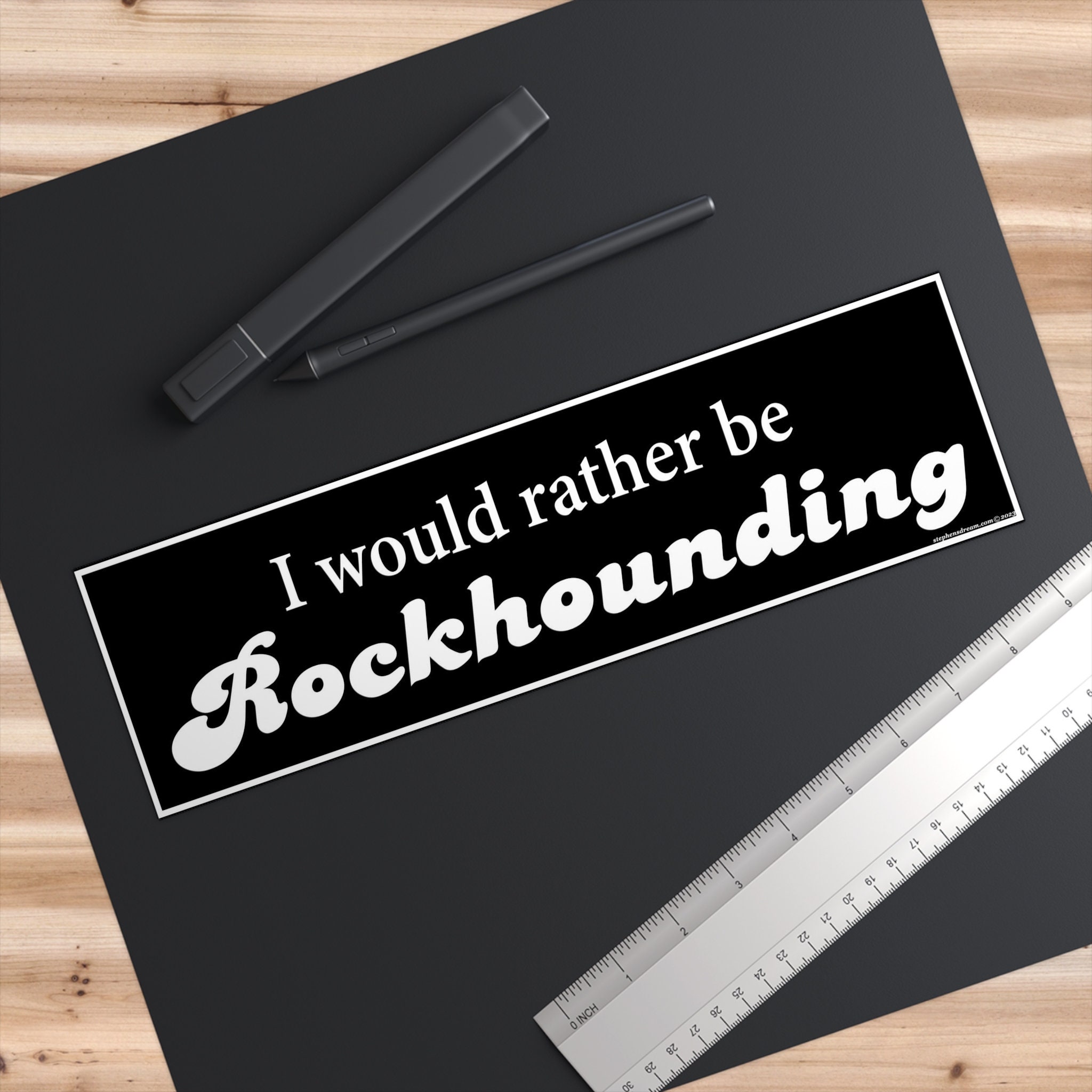 Embark on an adventure of geological excitement with our "I would rather be rockhounding" bumper sticker! It's the perfect way to showcase your passion for hunting treasures from the Earth. Whether you're traversing rugged landscapes or uncovering hidden gemstones, this sticker boldly declares your preference for rockhounding over the mundane. Stick it on your vehicle and let the world know that your heart belongs to the thrill of discovering nature's hidden wonders. Get ready to rock and roll with this whimsical bumper sticker that speaks volumes about your adventurous spirit!