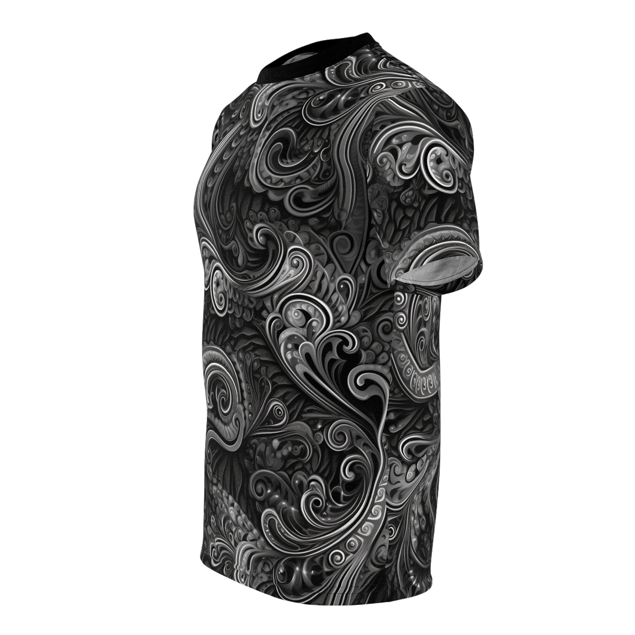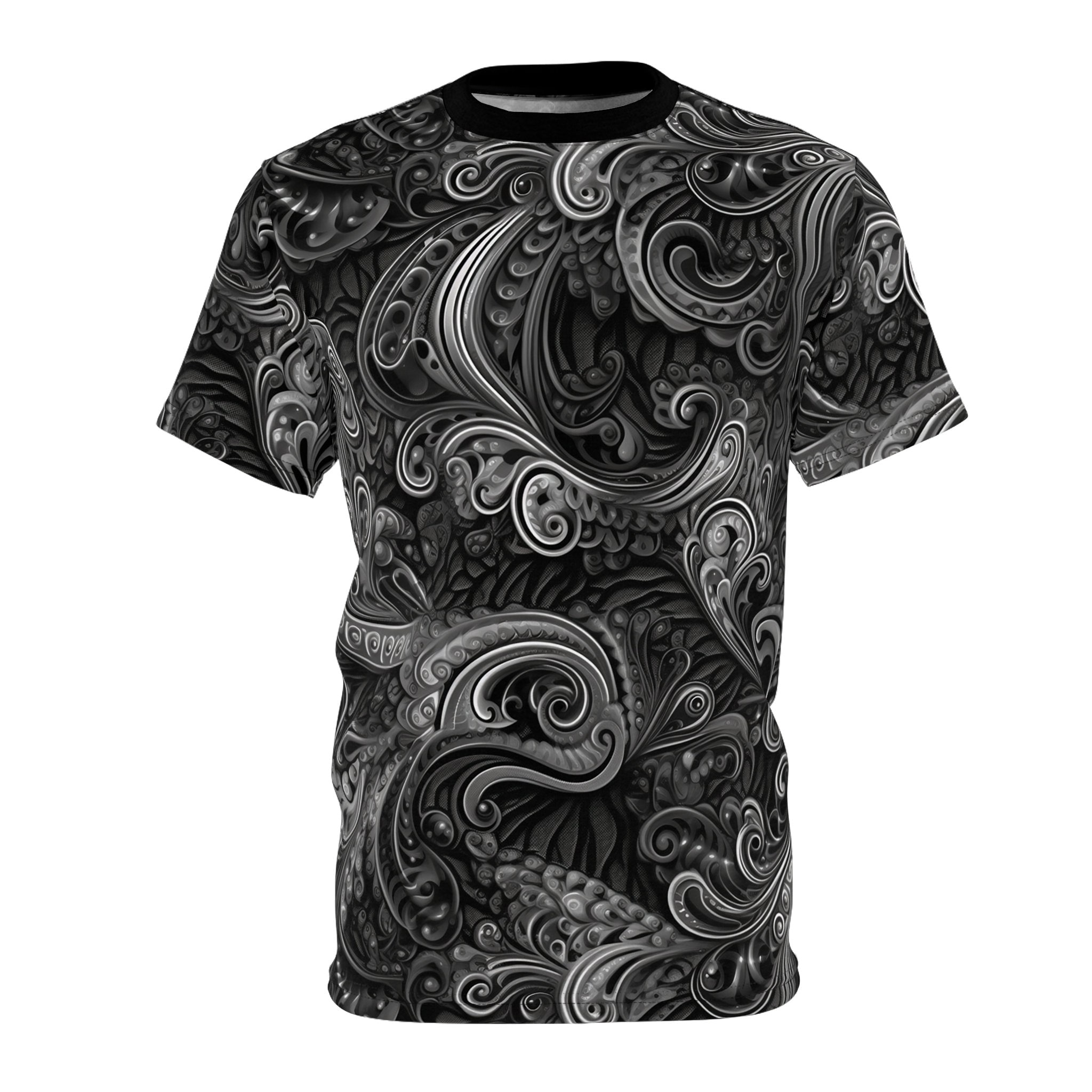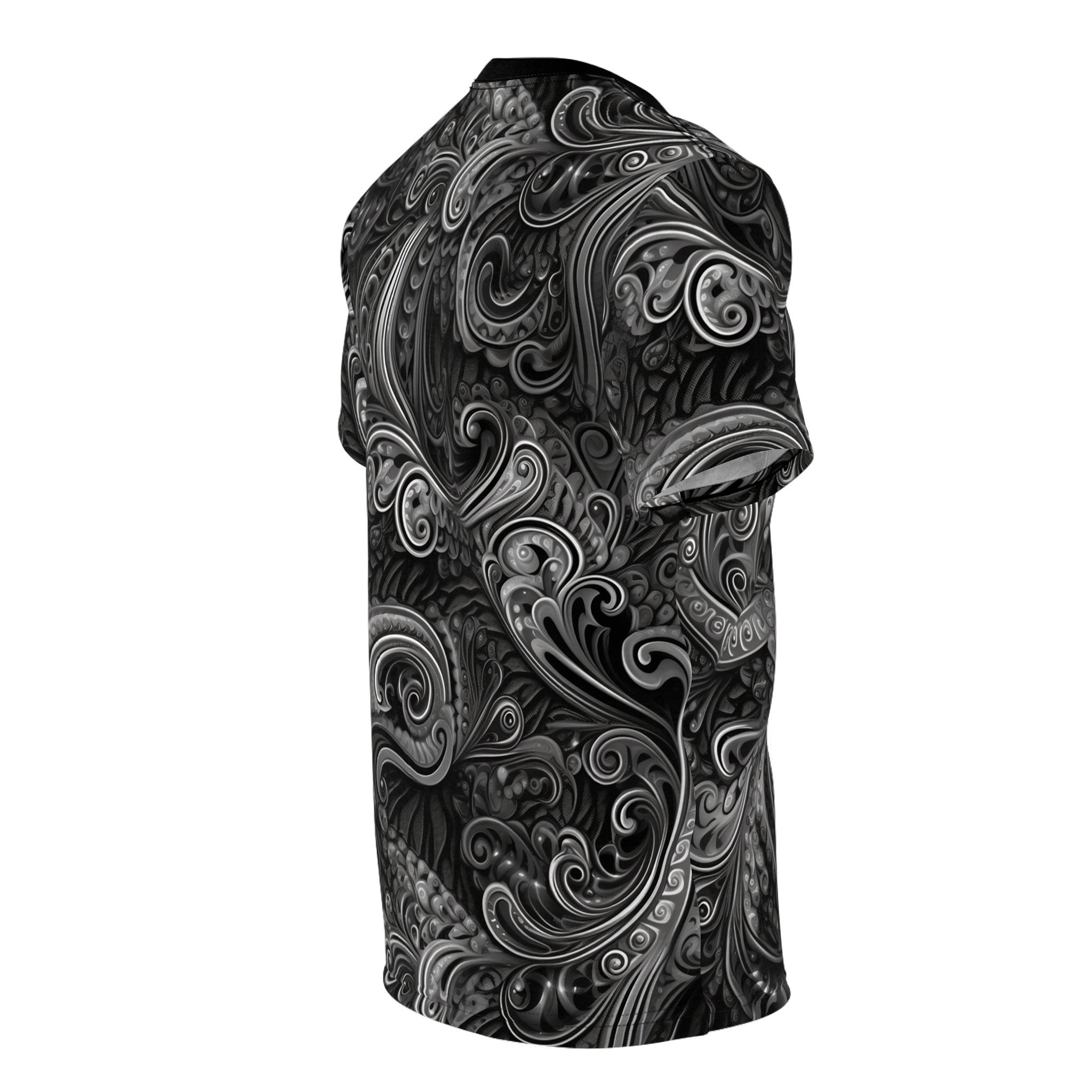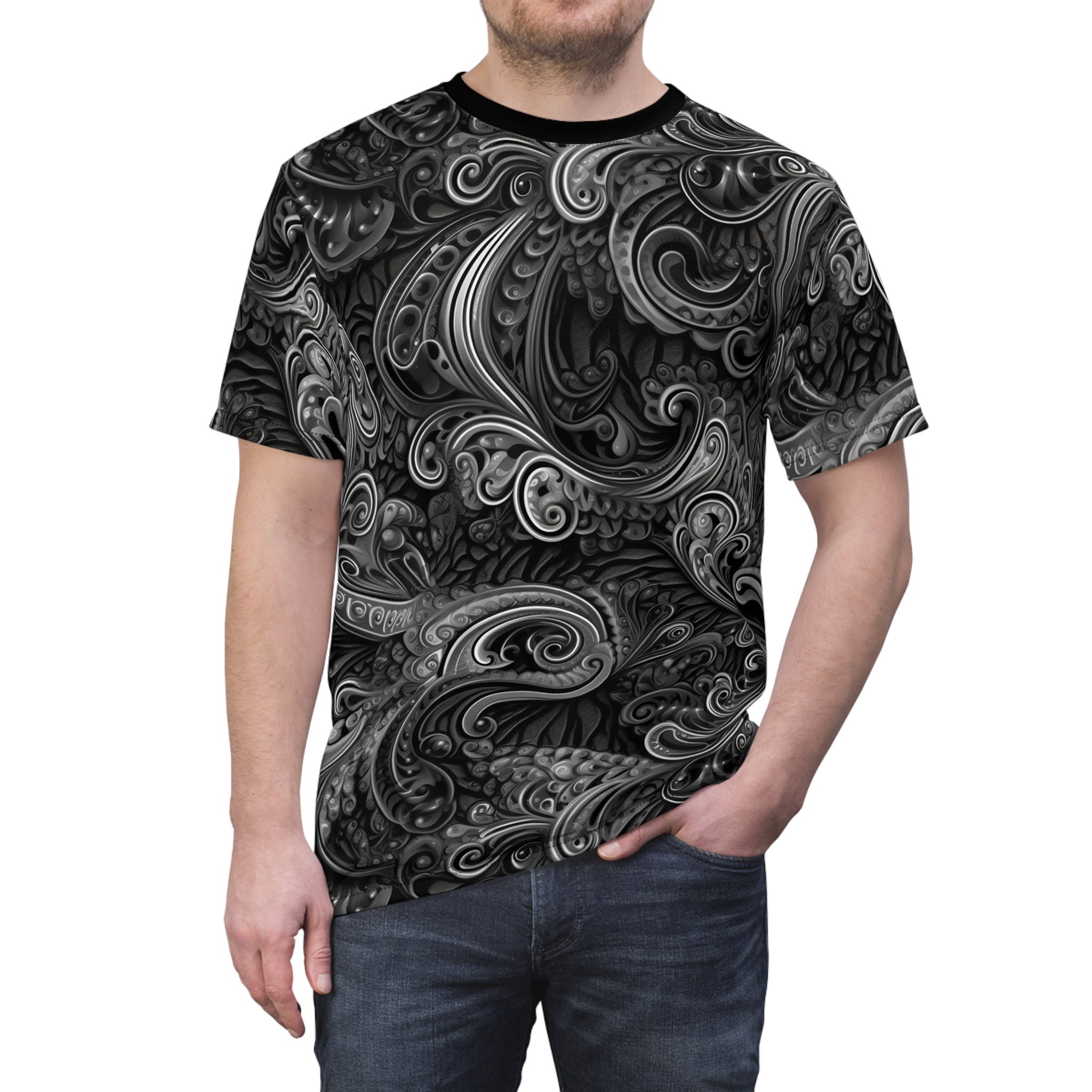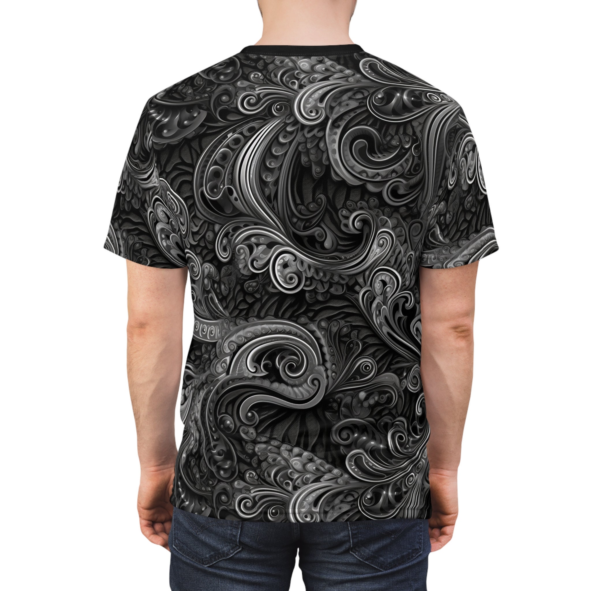 Embrace masculine sophistication and unparalleled comfort with our Dark Dream Paisley T-shirt. Crafted with utmost care from 100% polyester, this lightweight fabric offers a soft and breathable feel that keeps you cool and stylish throughout the day.