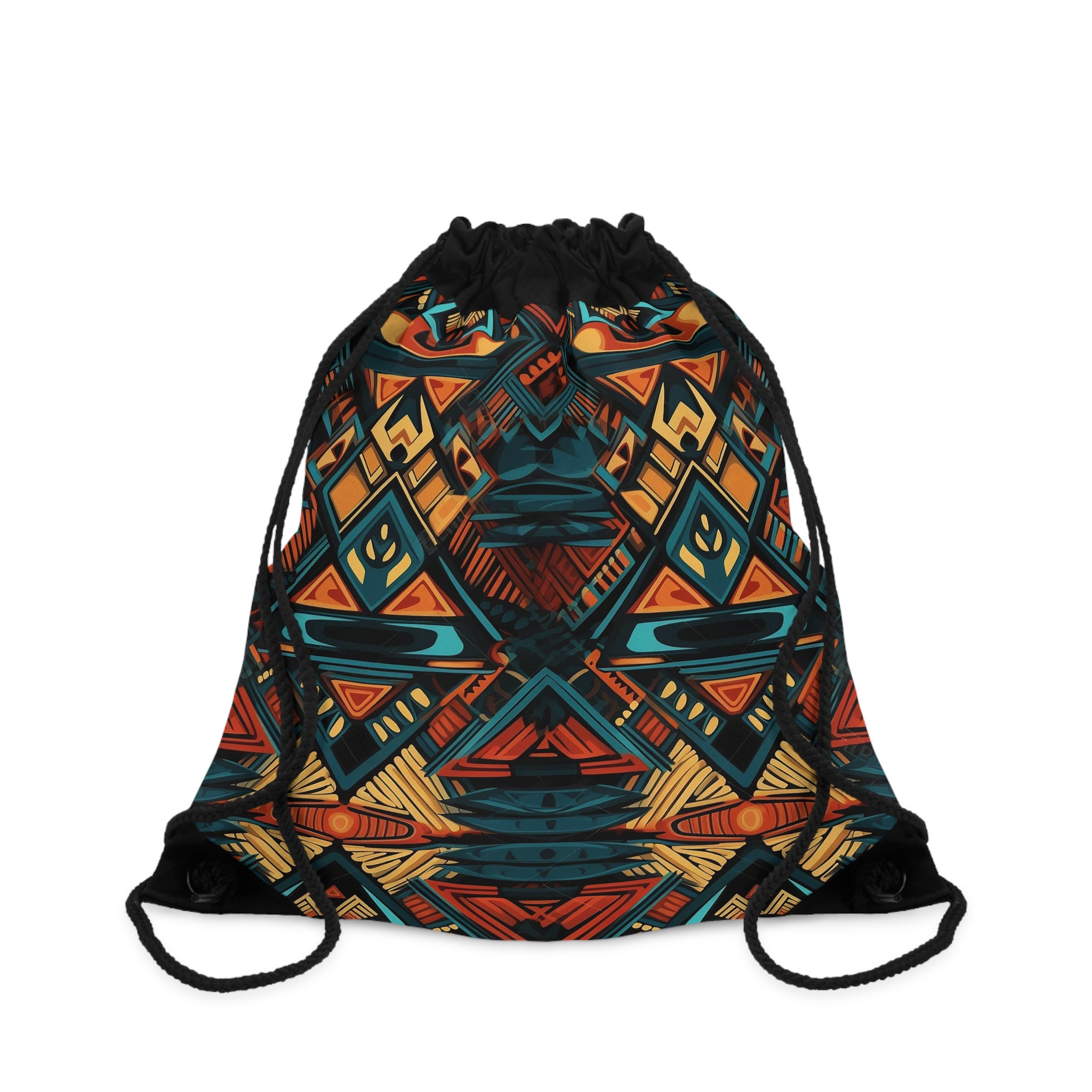 Unleash your free spirit with our Tribal Boho Drawstring Bag! 🌞 Made from 100% lightweight polyester, this bag is the ultimate blend of style and practicality. It's fully lined with black sheeting for added durability.