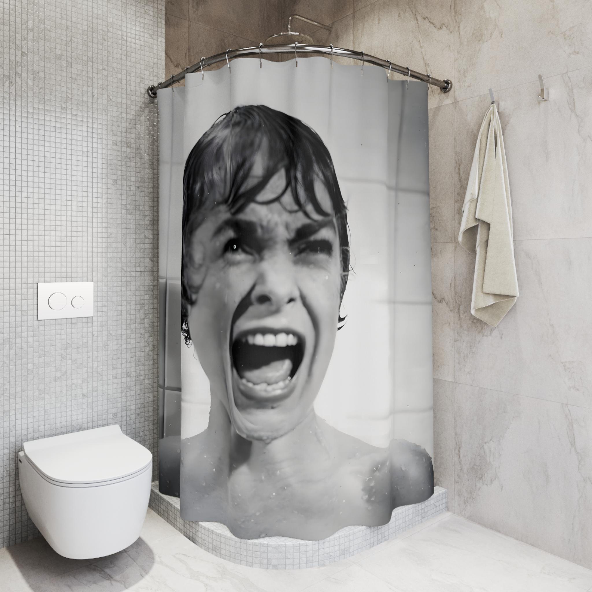 Transform your bathroom into a scene from the iconic "Psycho" (1960) movie with our thrilling shower curtain featuring Janet Leigh's unforgettable scream in the shower. Capturing the essence of Hitchcock's masterpiece, this curtain adds a touch of suspense and intrigue to your daily routine.
