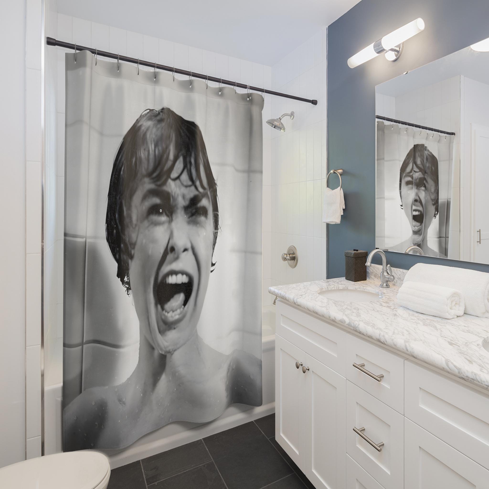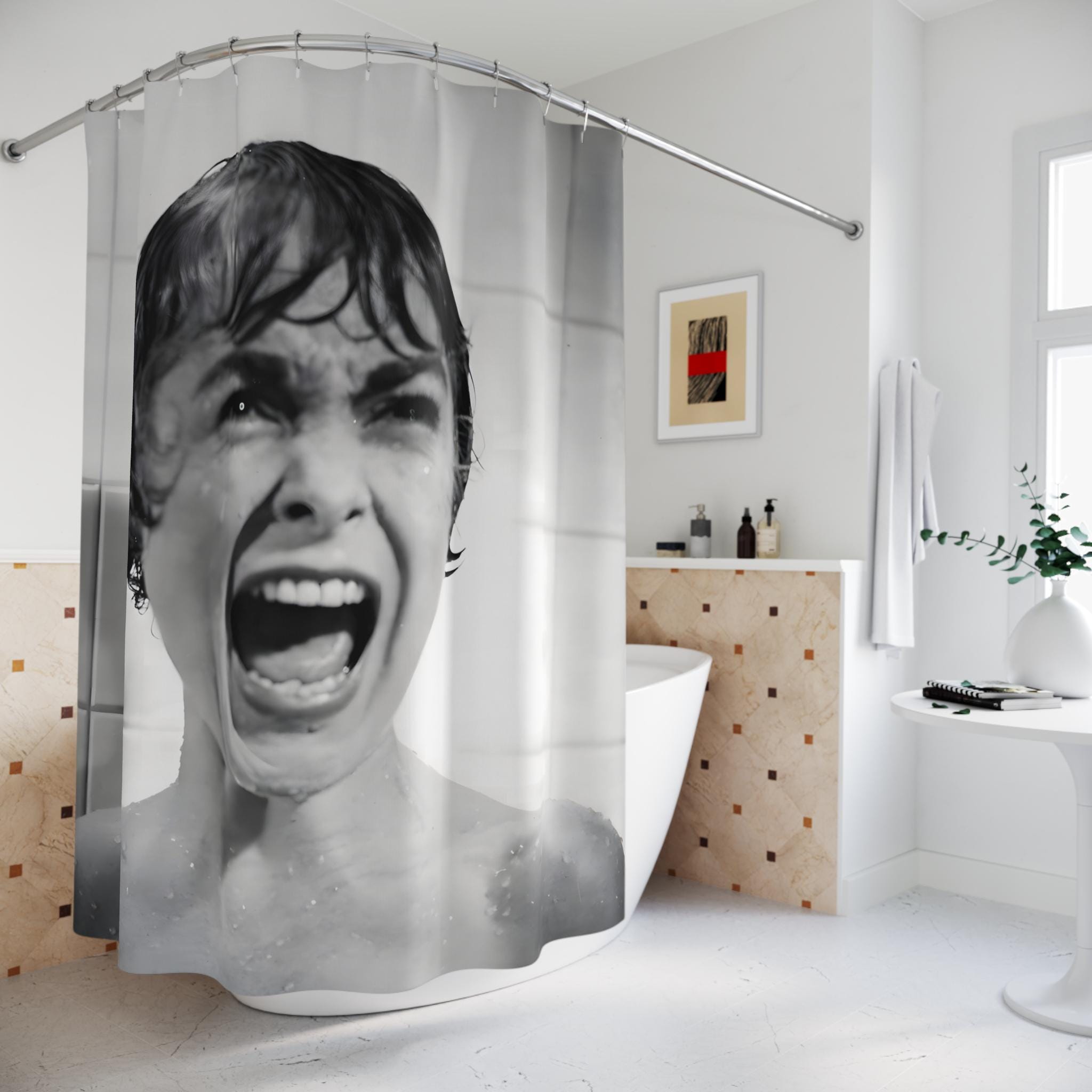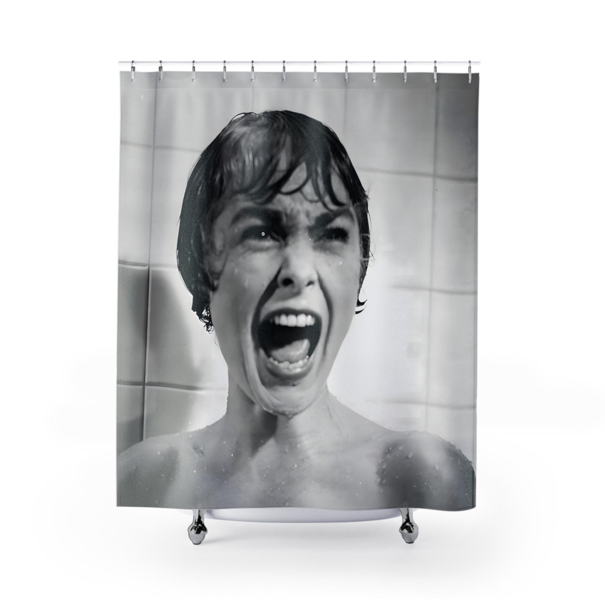 Transform your bathroom into a scene from the iconic "Psycho" (1960) movie with our thrilling shower curtain featuring Janet Leigh's unforgettable scream in the shower. Capturing the essence of Hitchcock's masterpiece, this curtain adds a touch of suspense and intrigue to your daily routine.