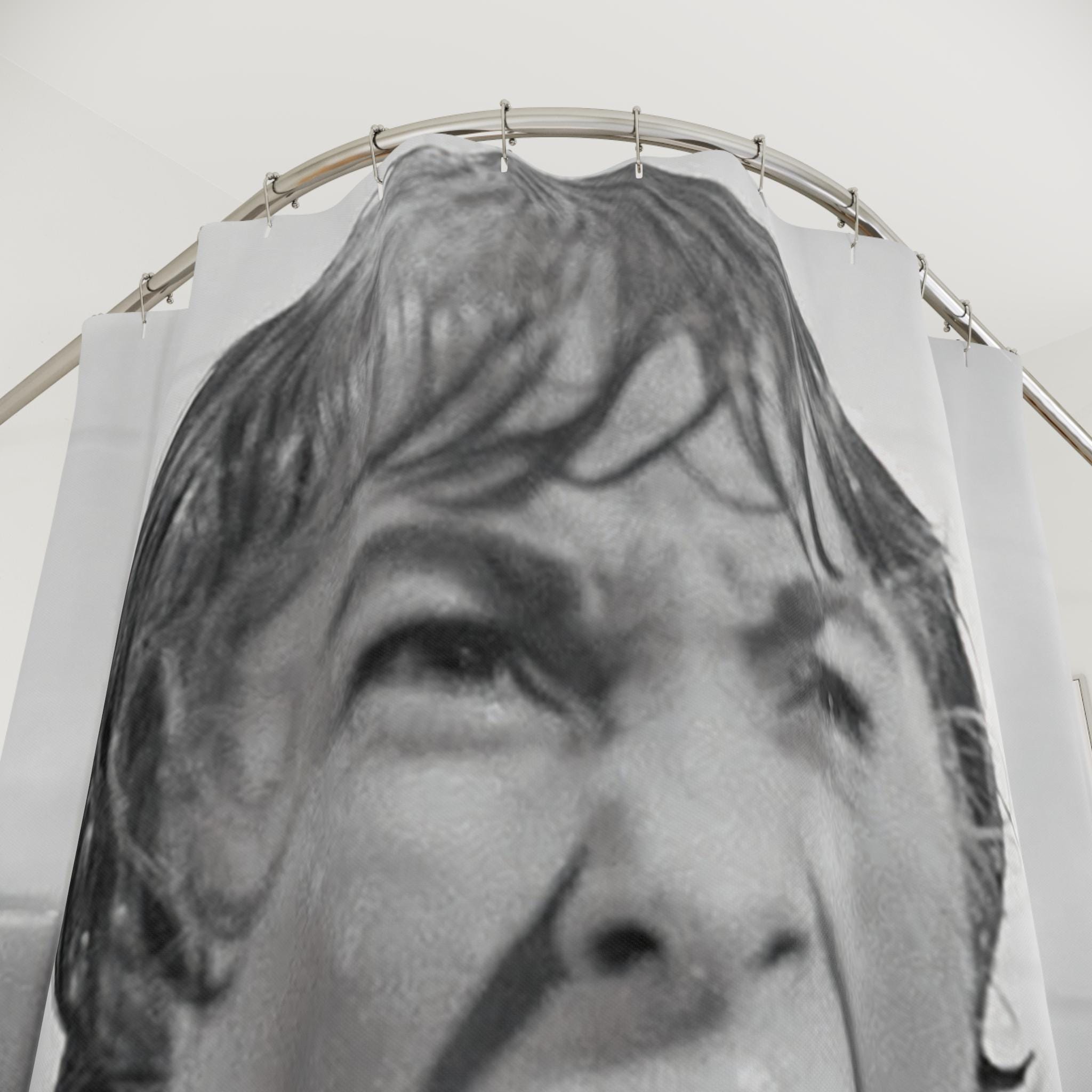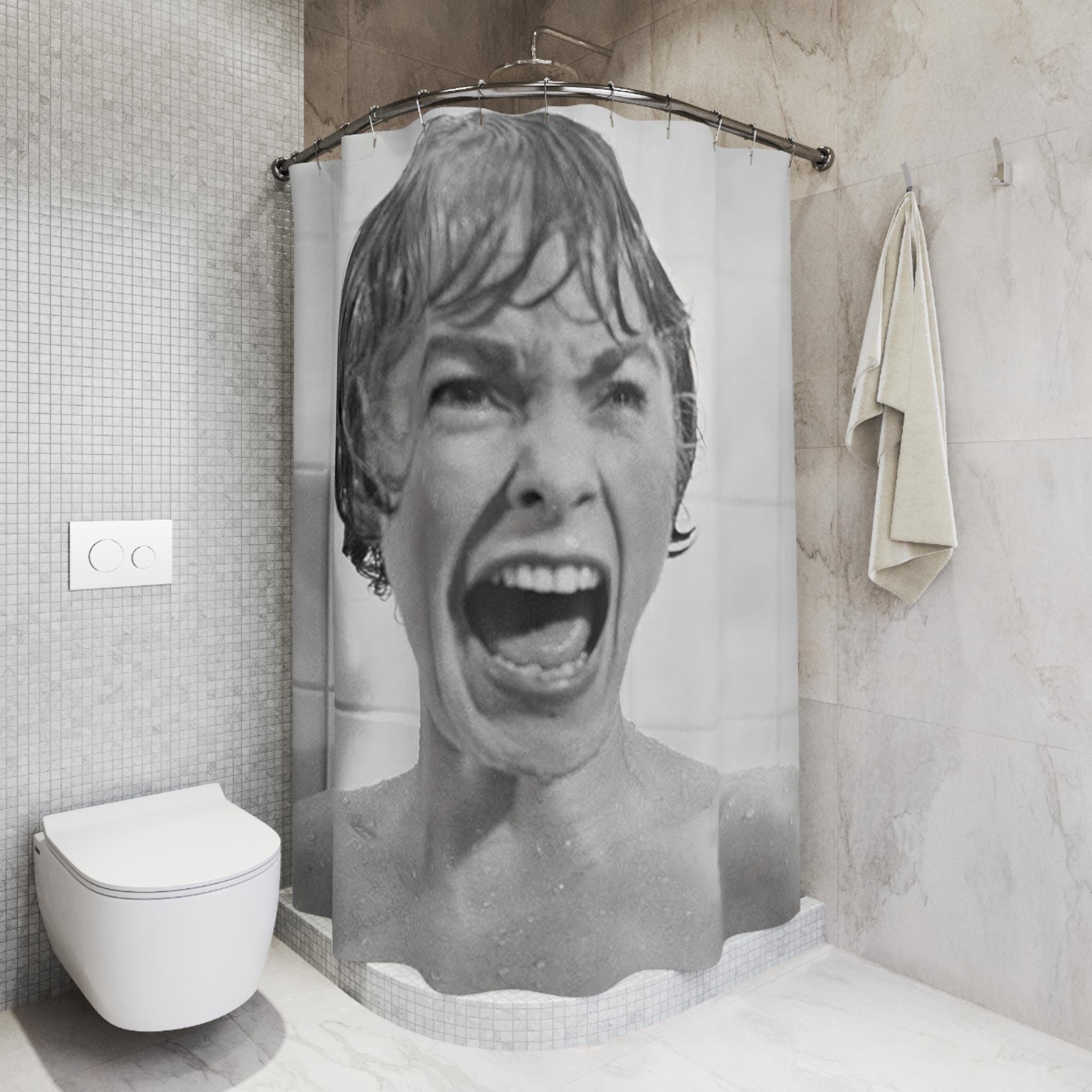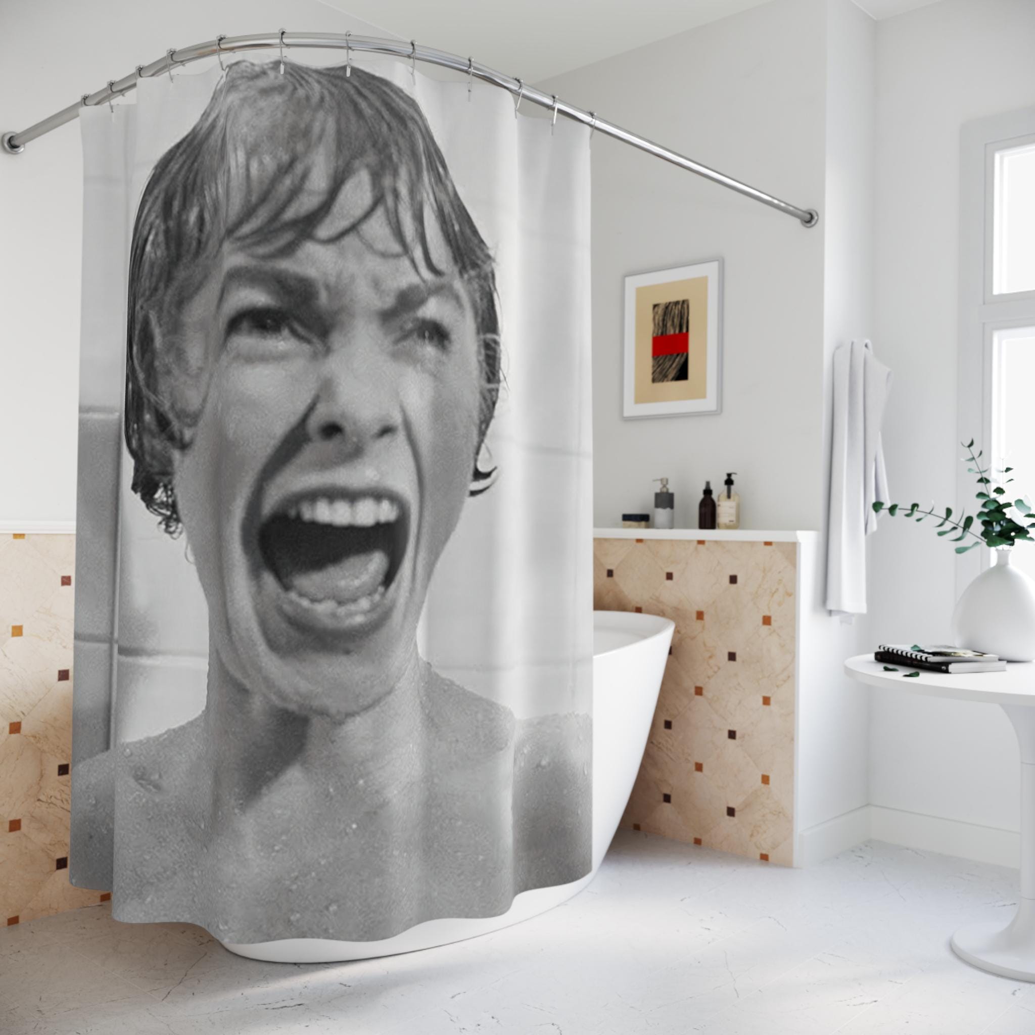 Transform your bathroom into a scene from the iconic "Psycho" (1960) movie with our thrilling shower curtain featuring Janet Leigh's unforgettable scream in the shower. Capturing the essence of Hitchcock's masterpiece, this curtain adds a touch of suspense and intrigue to your daily routine.