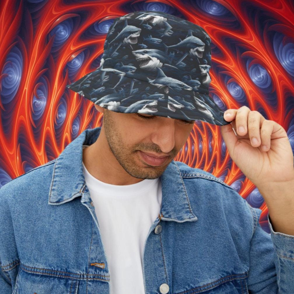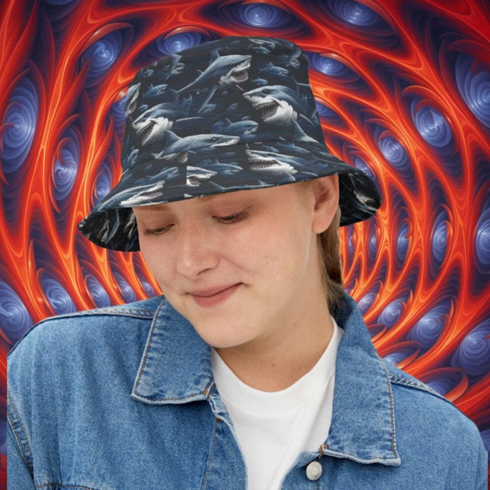 Dive into a sea of style with our Shark Pattern Bucket Hat. Originally crafted for protection against rain, this modernized bucket hat is making waves in fashion. Made from high-quality 100% polyester, this hat features a playful pattern of sharks that adds a touch of fun and adventure to your look. The two-size design, available in small and large, ensures a comfortable fit for all ocean enthusiasts. Whether you're heading to the beach, exploring the outdoors, or just soaking up the sun, our Shark Pattern Bucket Hat is the perfect accessory for those who love to make a splash in both style and personality.
