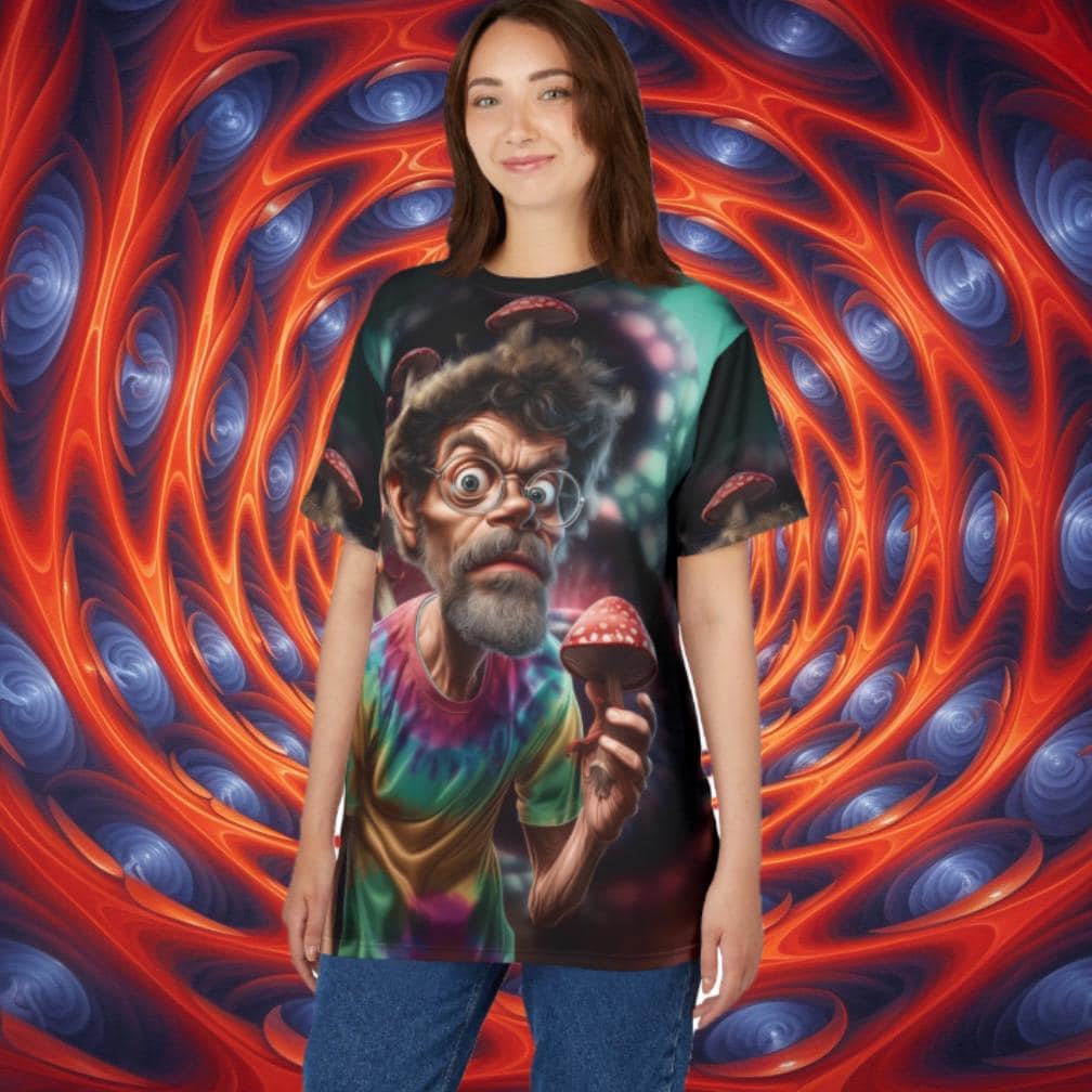 Step straight into the trip with this head-turning all-over-print tee featuring the one-and-only mushroom mystic himself… Terence McKenna.