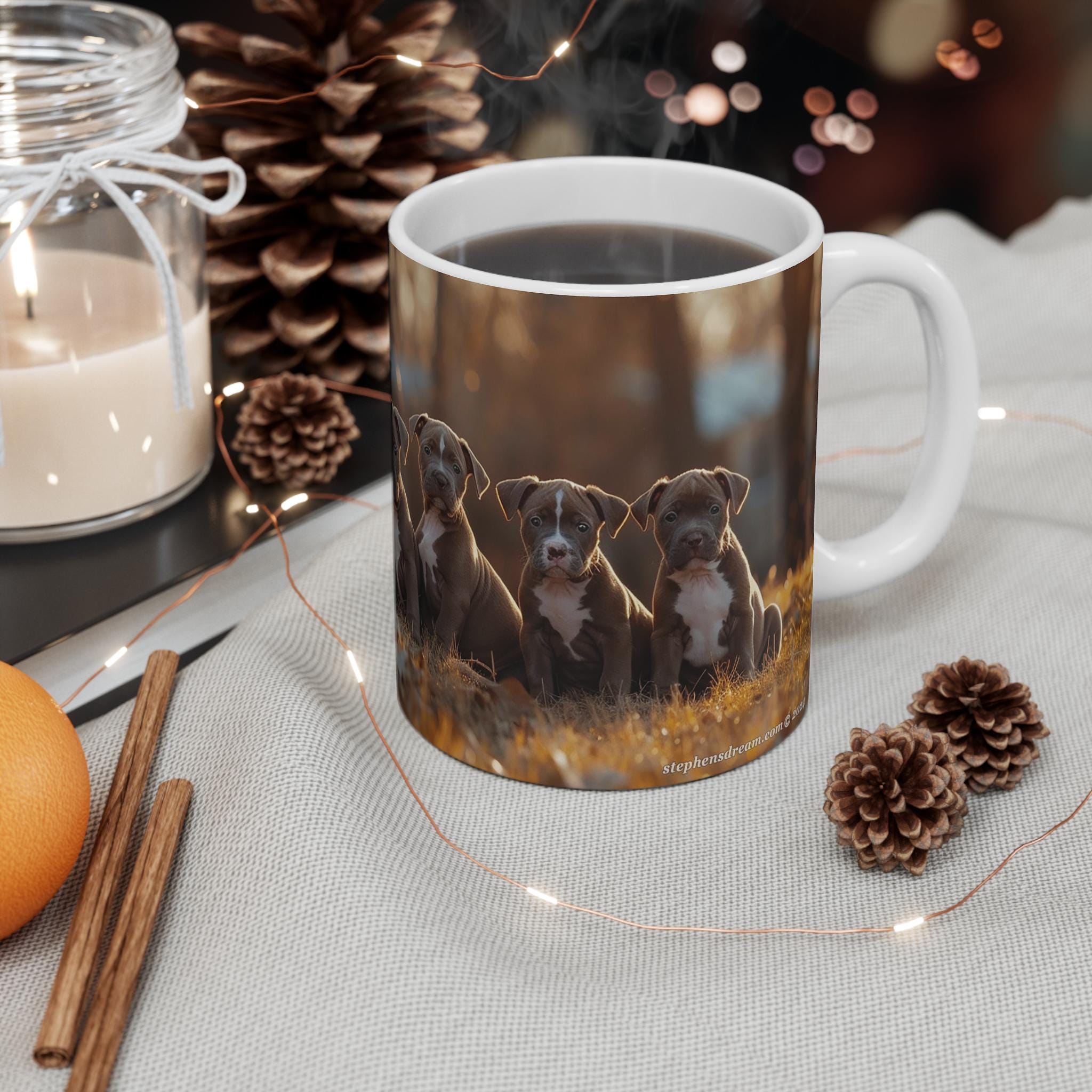Introducing our adorable Pit Bull Puppies Mug! Get ready to start your day with a dose of puppy love and charm. Crafted from durable white ceramic, this 11oz mug features playful pit bull puppies striking a pose for the camera. Whether you're enjoying your morning coffee or sipping your favorite tea, let these adorable pups bring joy and warmth to every sip. Perfect for dog lovers and puppy enthusiasts alike, this mug is sure to brighten your day with its irresistible cuteness!