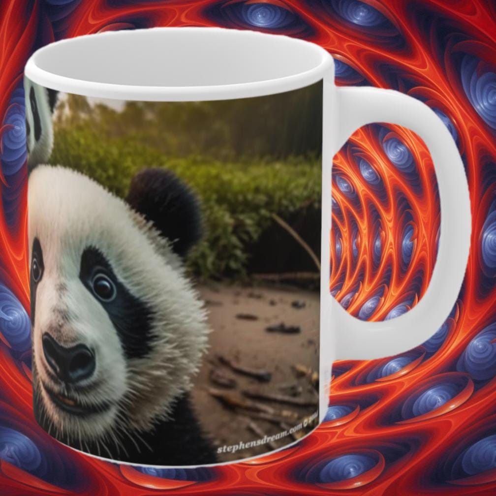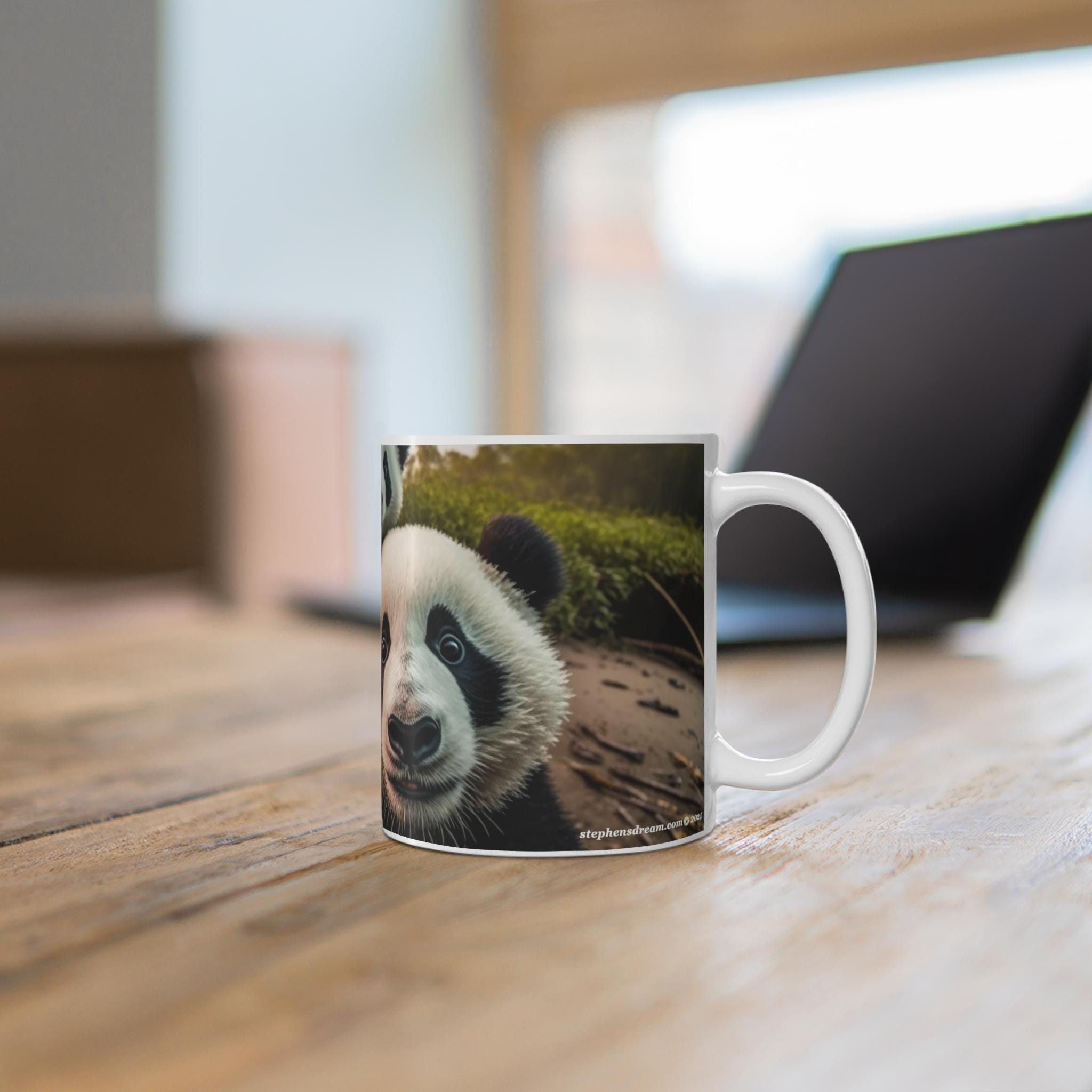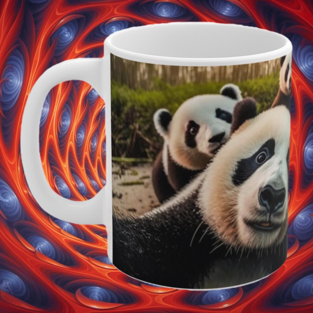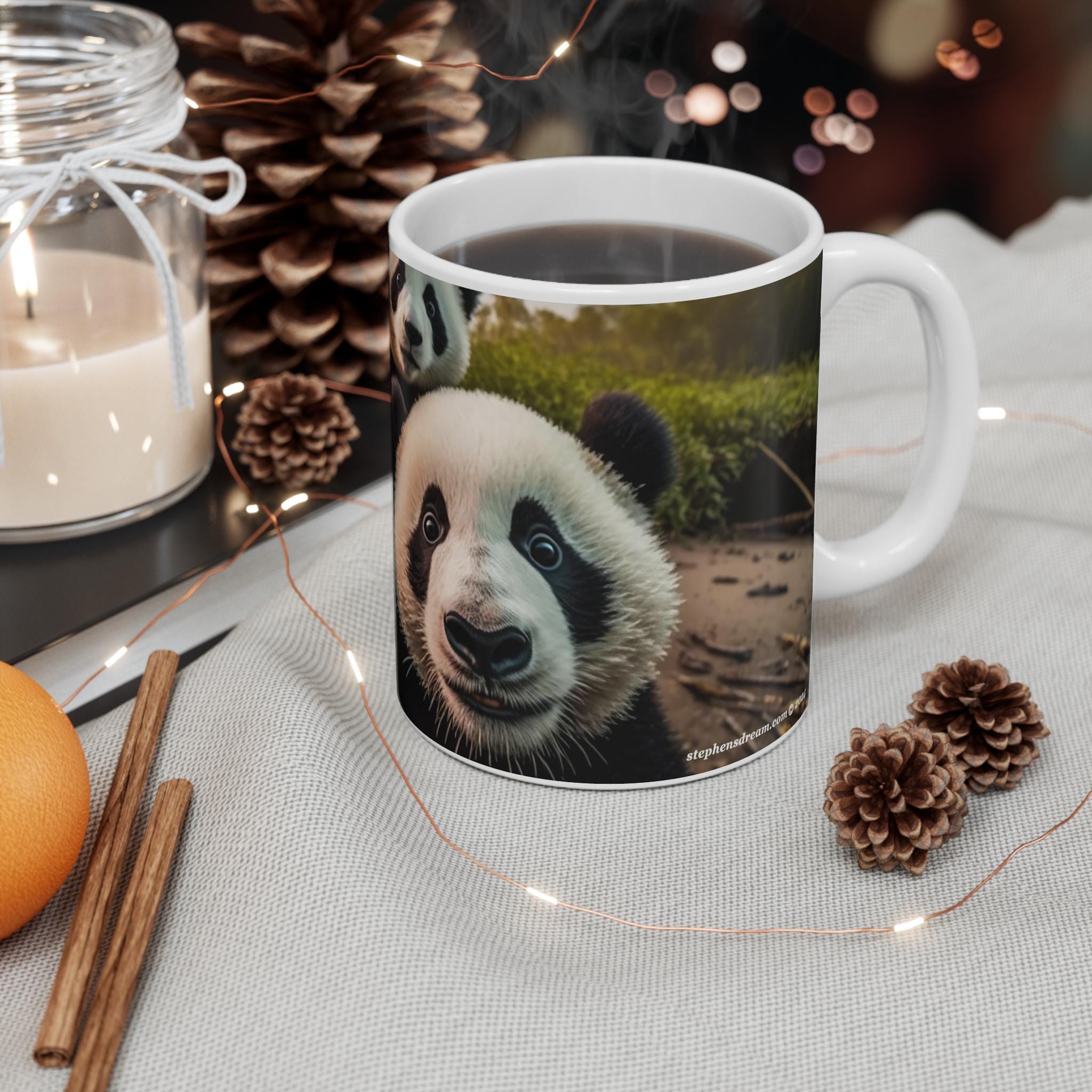 Embrace the heartwarming charm of our white ceramic mug adorned with a delightful gathering of pandas. This 11 oz mug captures the innocence and camaraderie of these beloved creatures, turning your daily sips into moments of joy. Whether it's your morning brew or an evening tea, the endearing panda design brings a smile to every sip. Crafted from sturdy ceramic, this mug not only showcases your love for pandas but is also microwave and dishwasher-safe for your convenience. Elevate your beverage experience and let the adorable pandas turn your routine into a delightful journey. Enjoy the company of these cuddly companions with each comforting sip.