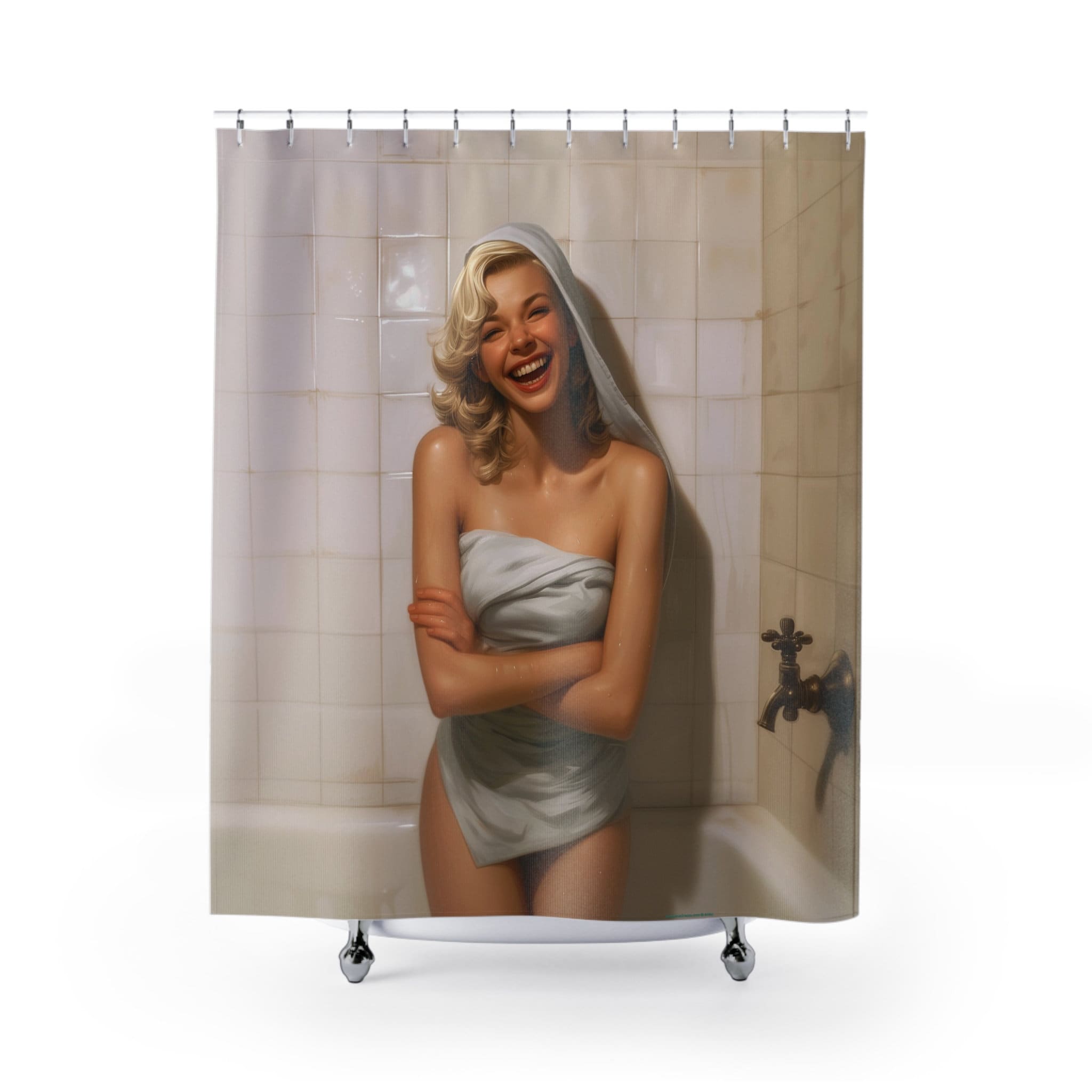 Made from high-quality, waterproof material, our curtain is durable and easy to clean, making it both functional and entertaining. So why not bring a little laughter into your bathroom with our Surprise Bathtub Lady Shower Curtain?