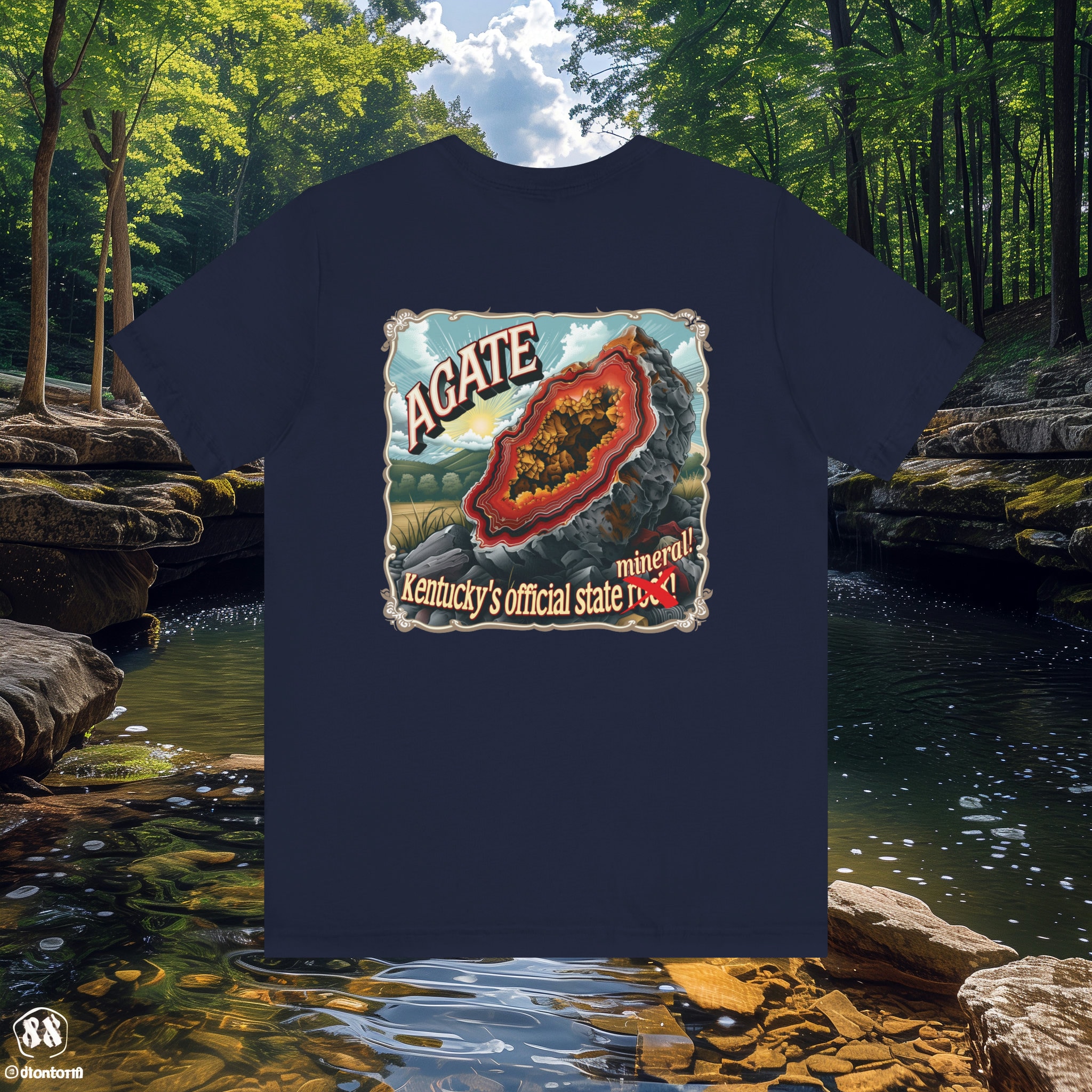 Back: Turn heads with our clever illustration featuring a stunning Kentucky agate, the official state rock! But wait, there's a twist – the word "rock" is crossed out and replaced with "mineral" because, let's face it, agate is not technically a rock; it's a mesmerizing quartz mineral waiting to be admired and cherished!