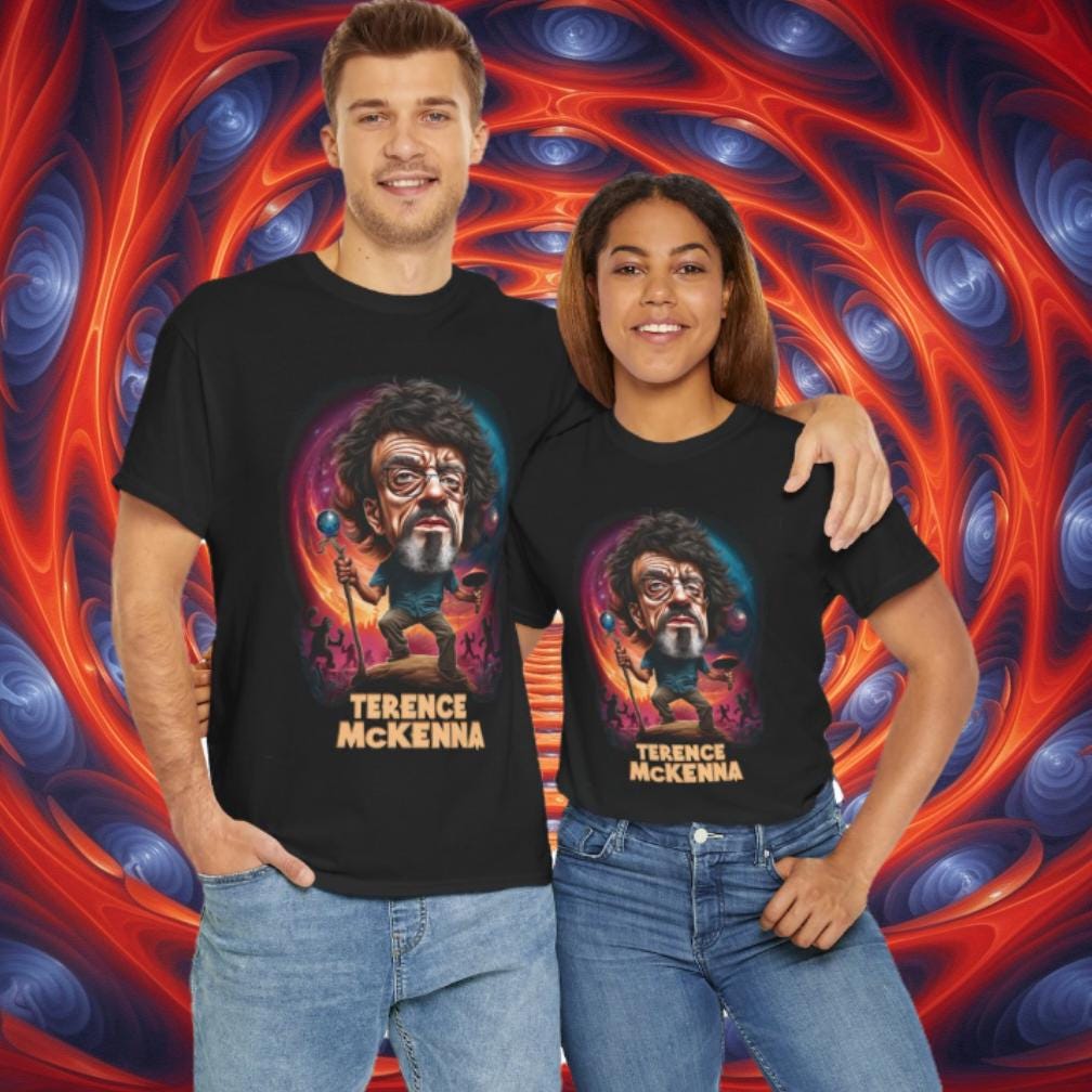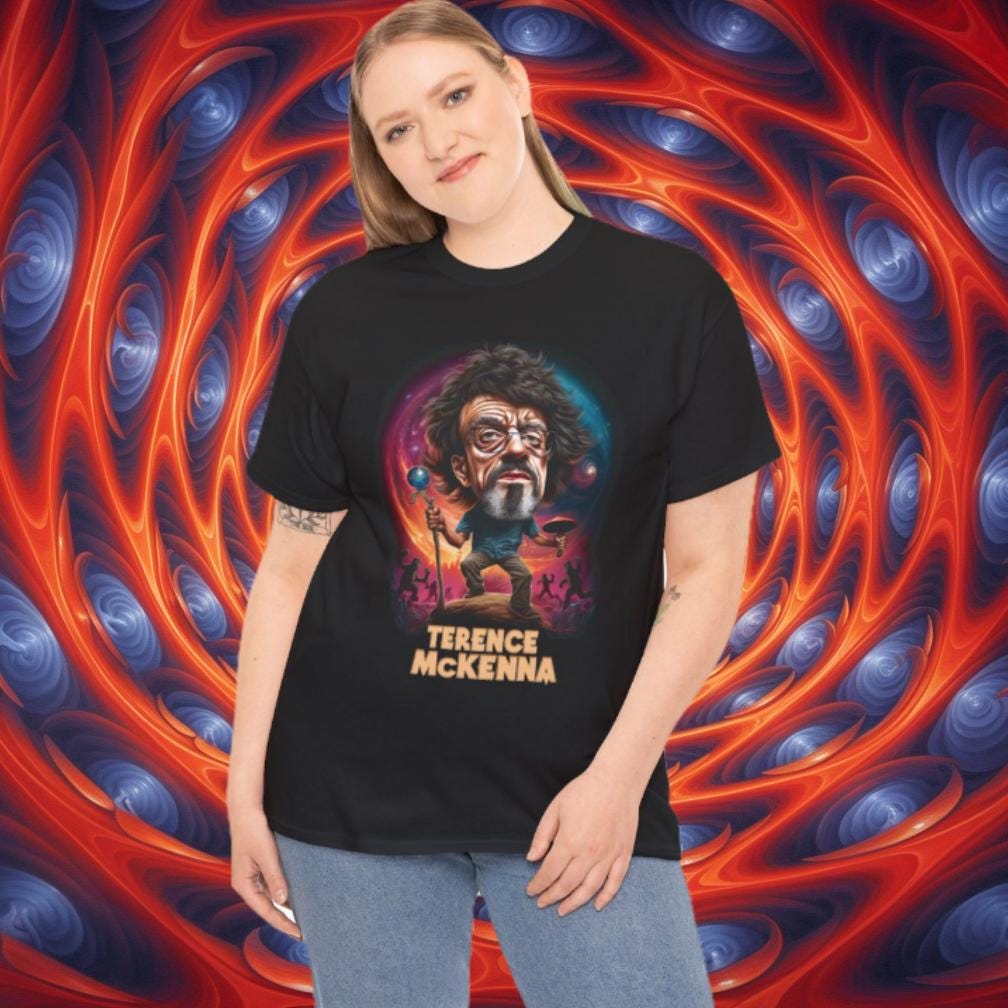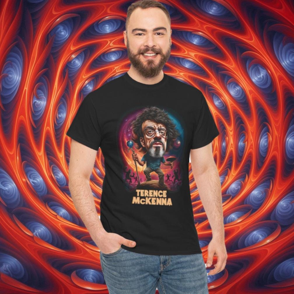 Channel cosmic wisdom, mushroom magic, and far-out philosophy with this wildly fun graphic tee inspired by the legendary psychonaut himself — Terence McKenna. Featuring a bold caricature surrounded by trippy cosmic visuals, primates mid-evolution, and otherworldly fungi, this shirt is a conversation-starter for the consciousness-curious.