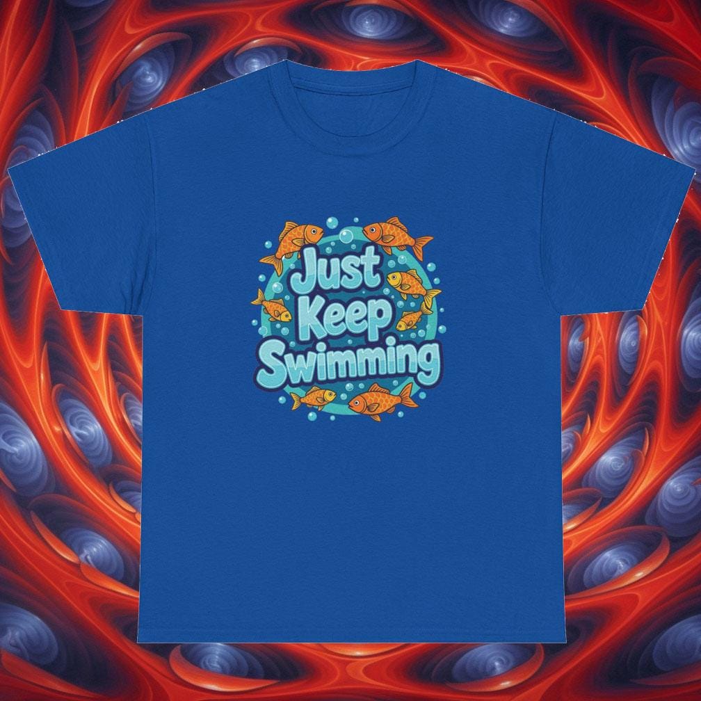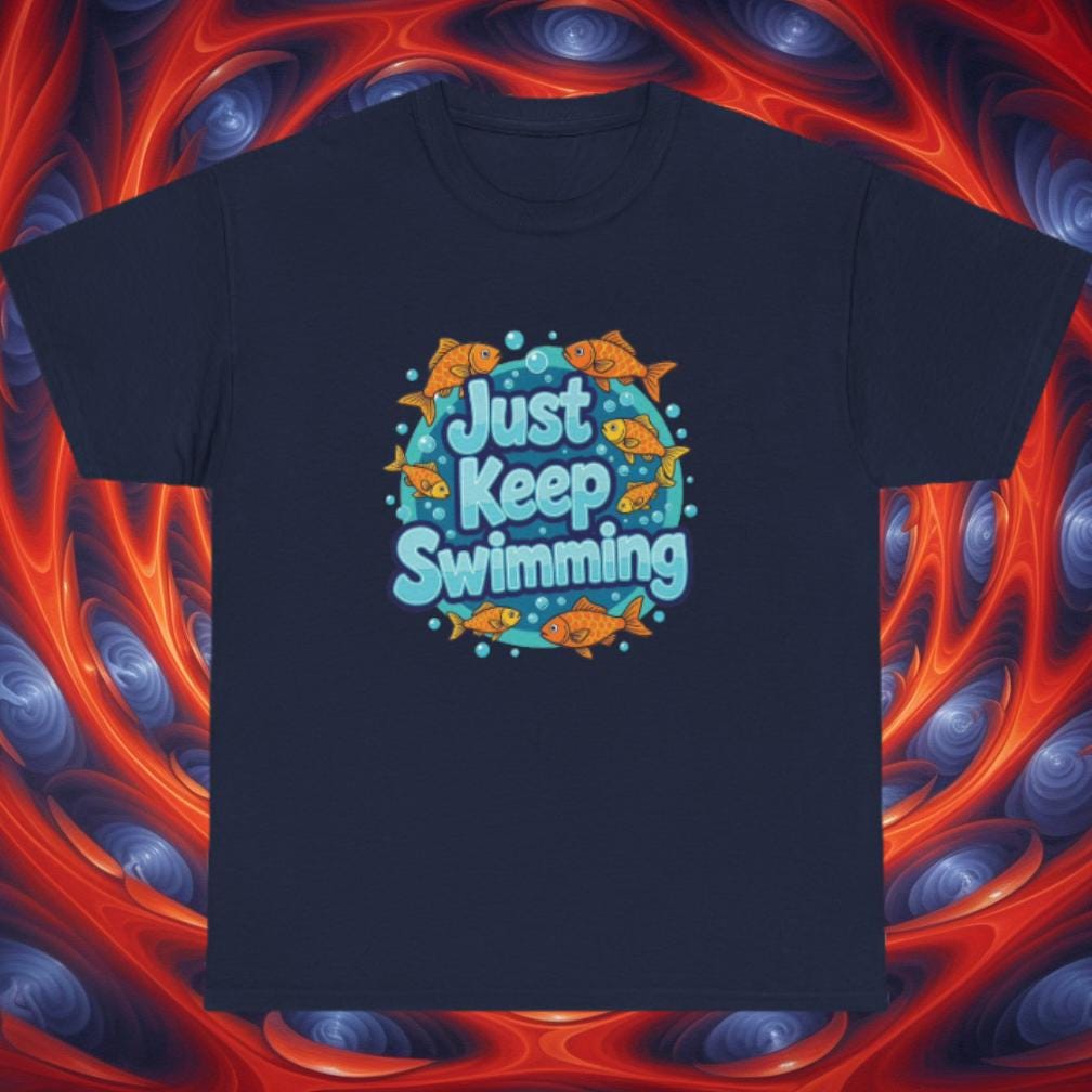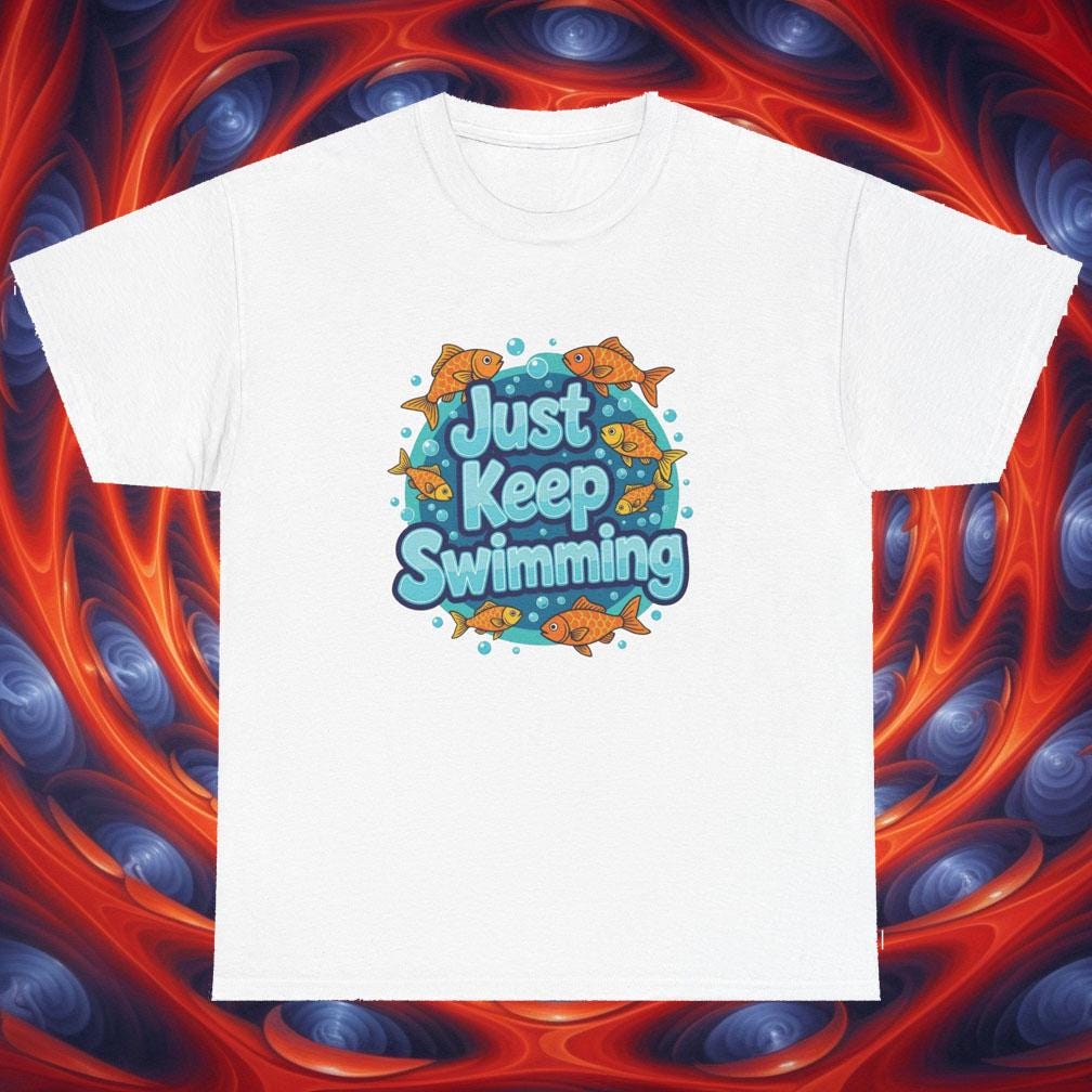 Just Keep Swimming T-Shirt – Motivational Fish Graphic Tee