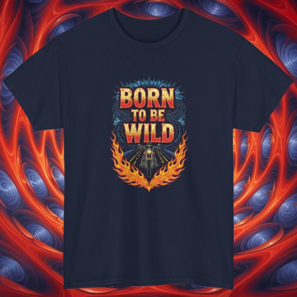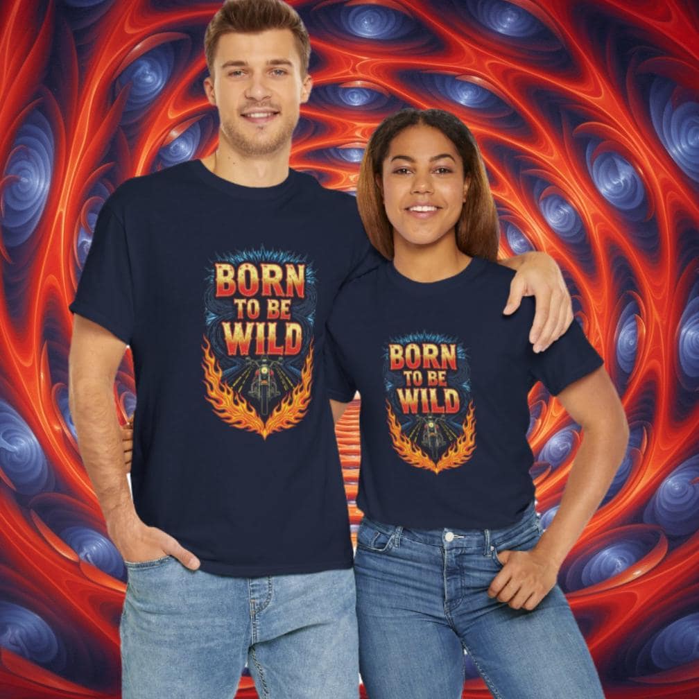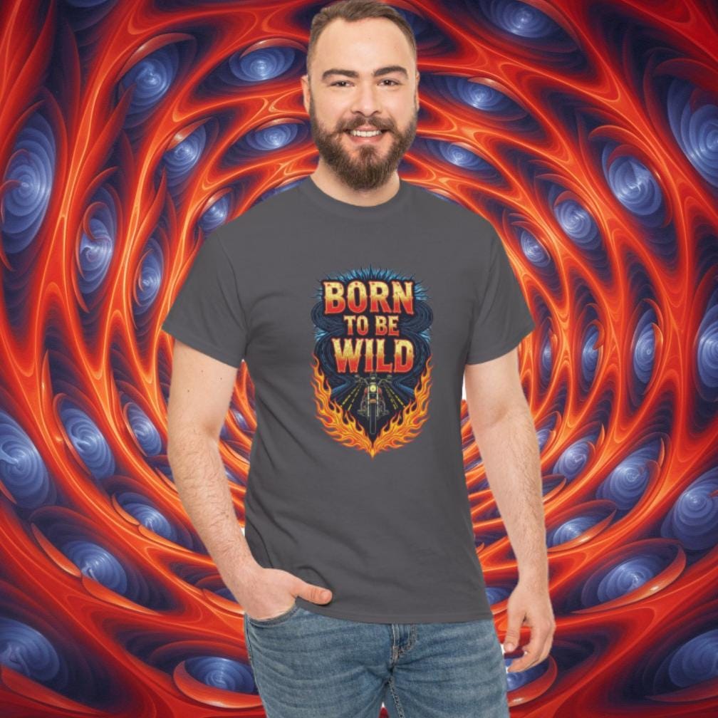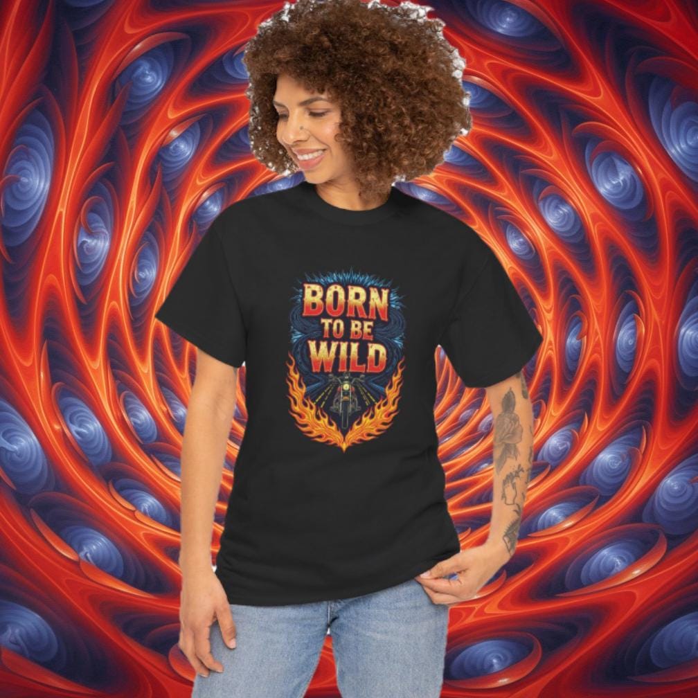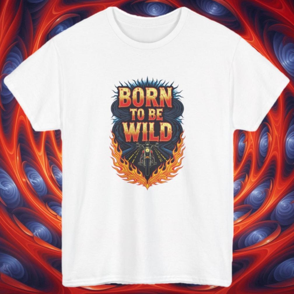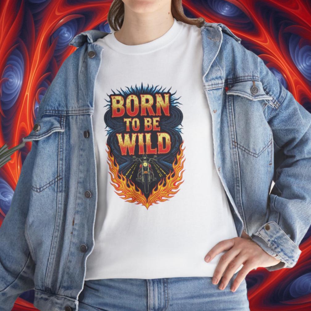 Rev up your wardrobe with this fiery Born to Be Wild graphic tee! Featuring a bold biker riding straight into freedom, surrounded by blazing flames and electric road energy, this shirt captures the rebellious spirit of the open highway. Perfect for motorcycle lovers, road trippers, and anyone with a wild streak, it’s more than just a shirt—it’s a lifestyle.