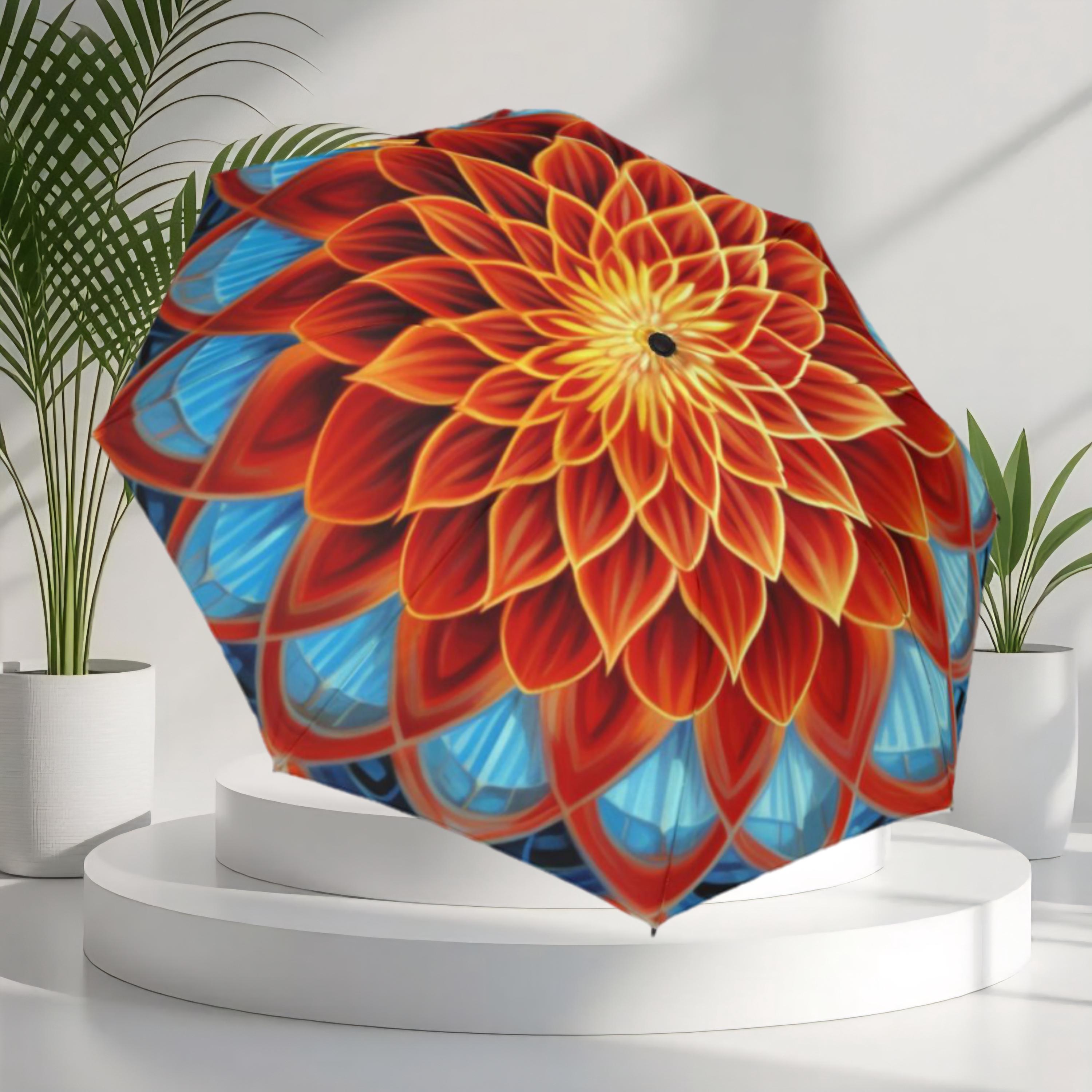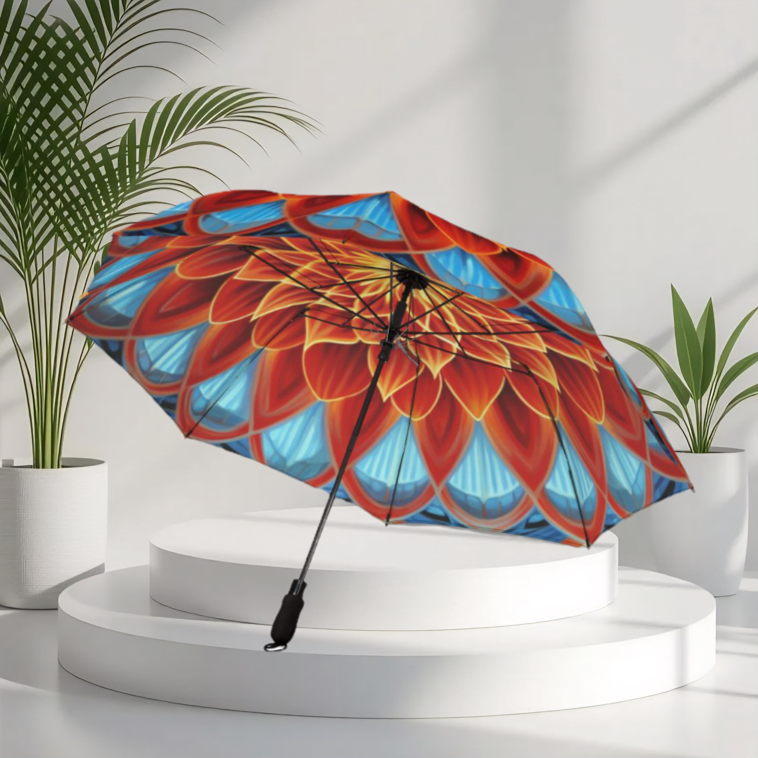 A lotus mandela design umbrella that combines beauty and functionality. Perfect for those looking to add a touch of elegance to their rainy day outfit. Suitable for individuals who appreciate unique and artistic accessories. Ideal for gifts during special occasions such as birthdays or Mother's Day.