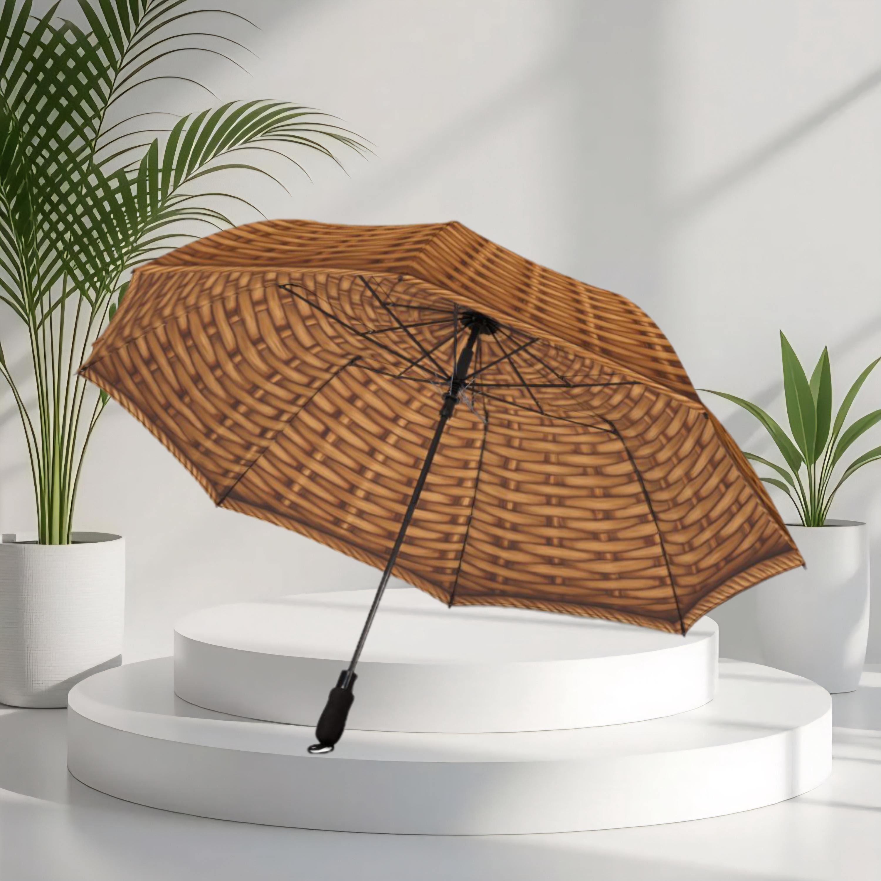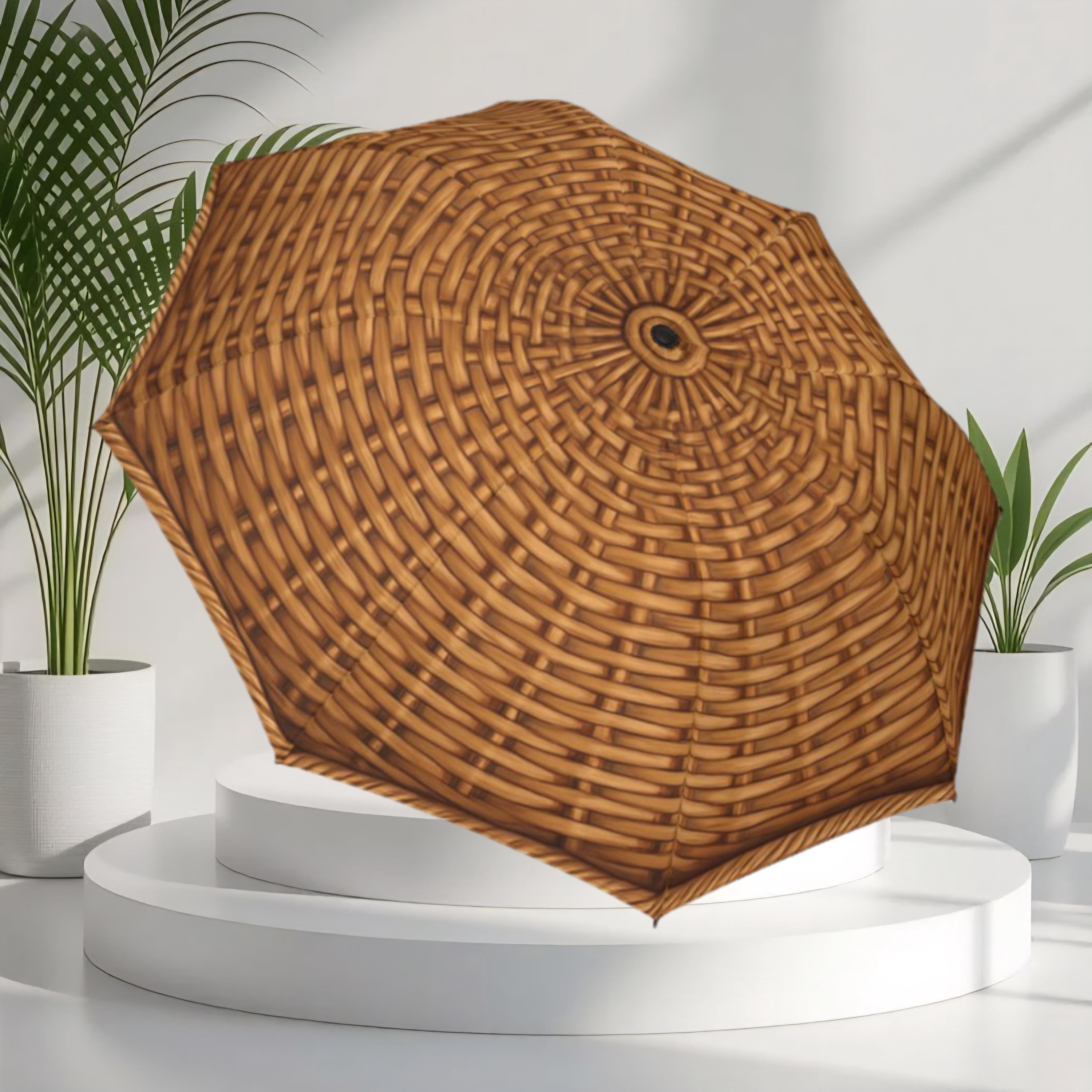 Stay stylish and protected from the rain with this wicker look umbrella. The semi-automatic operation allows for easy one-handed opening in just one second. Made from 100% polyester pongee waterproof fabric, this umbrella is durable and long-lasting. Perfect for those who appreciate functional and fashionable accessories, this umbrella is ideal for rainy days, outdoor events, and travel.
