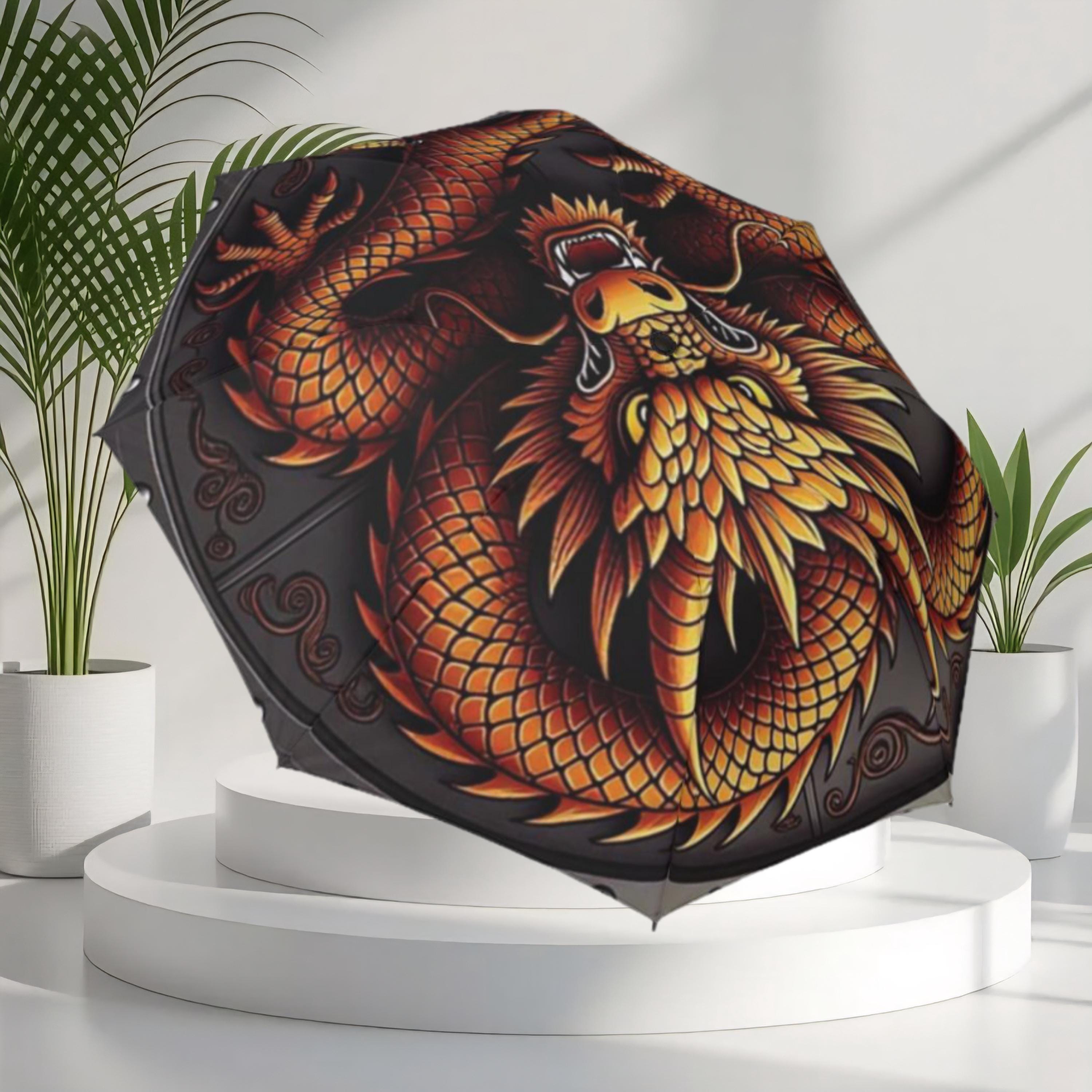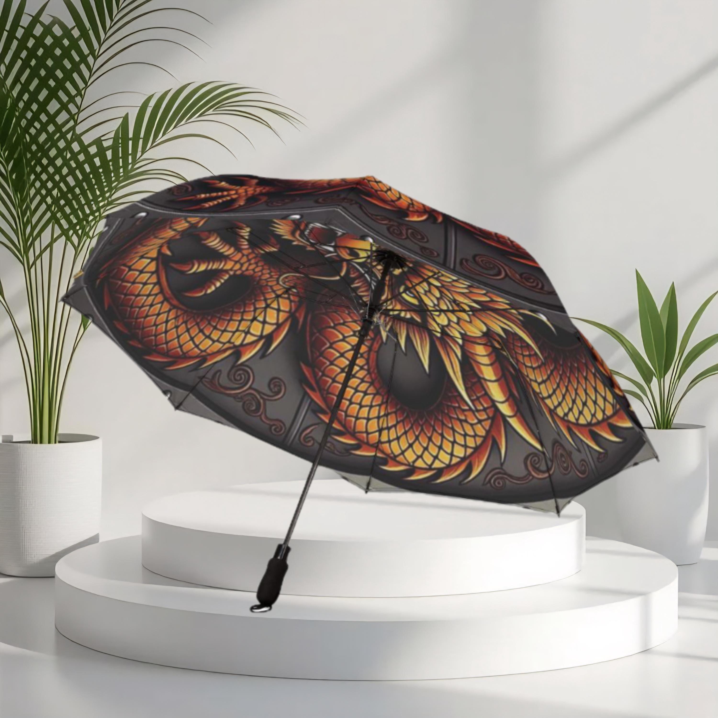 The Dragon Crest Umbrella brings a touch of fantasy and elegance to rainy days. With its semi-automatic operation and sturdy construction, this umbrella is perfect for anyone looking for both style and functionality. Ideal for dragon lovers or those seeking a unique accessory for rainy weather. Great for everyday use or as a gift for fantasy enthusiasts or fans of mythical creatures. Perfect for spring showers and rainy day commutes.