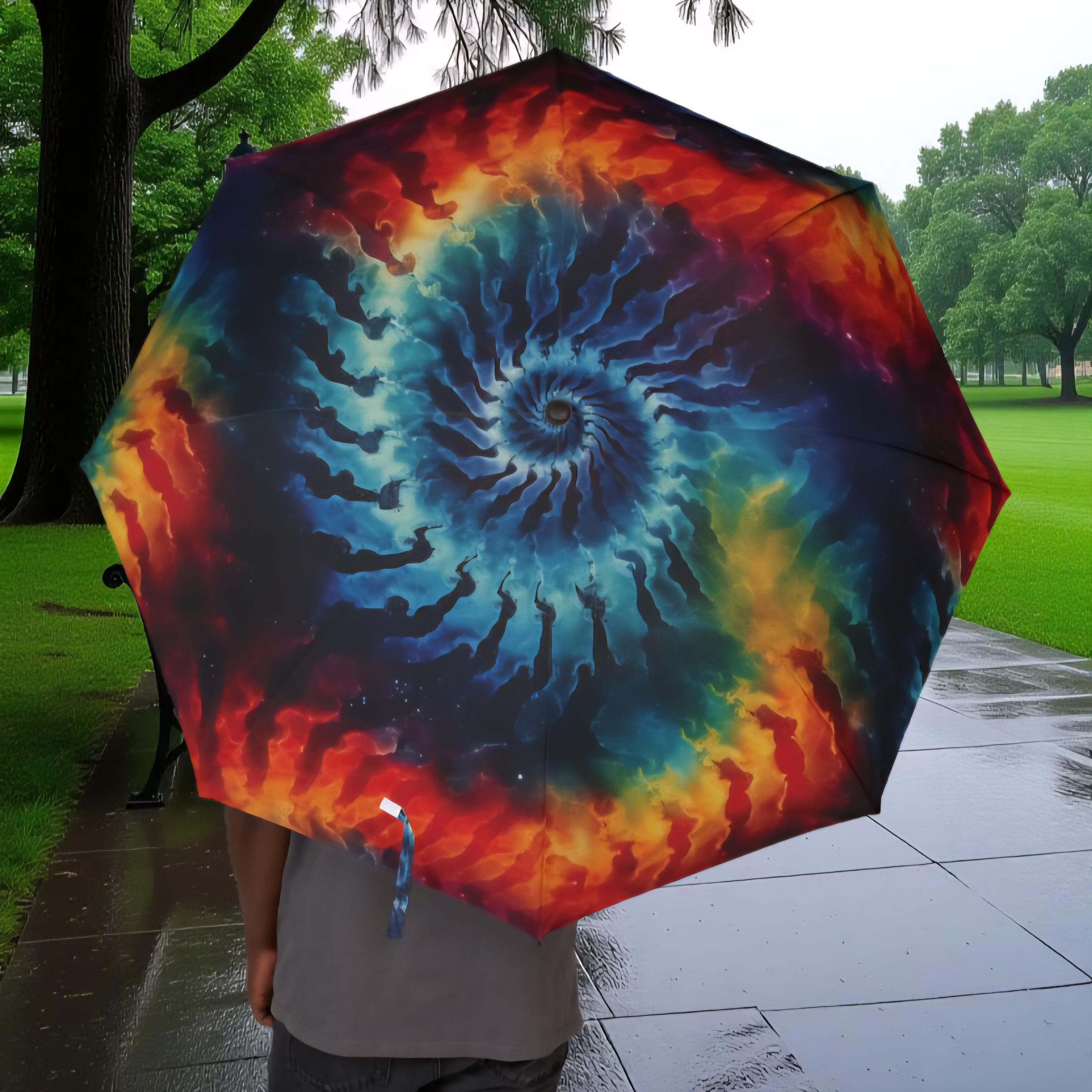 Stay dry in style with this Tie-Died Spiral Galaxy Umbrella. With its unique design, this umbrella gives off a fun and whimsical vibe, perfect for those who want to stand out on a rainy day. Great for individuals who love vibrant colors and cosmic patterns. Ideal for everyday use, as well as for festivals, concerts, and rainy outdoor events.