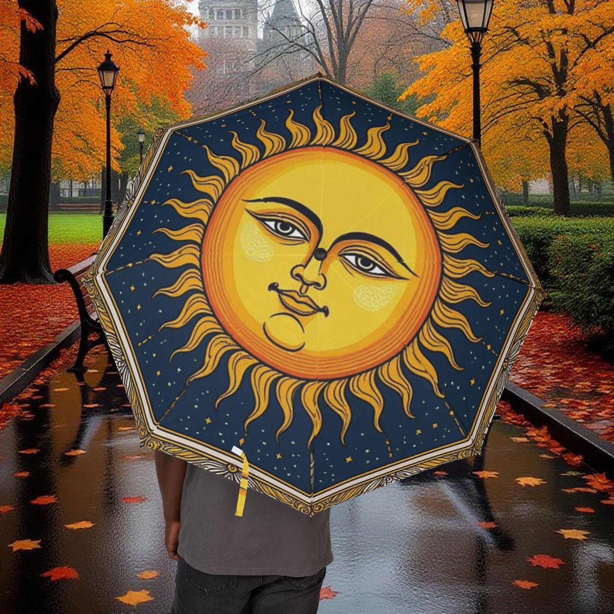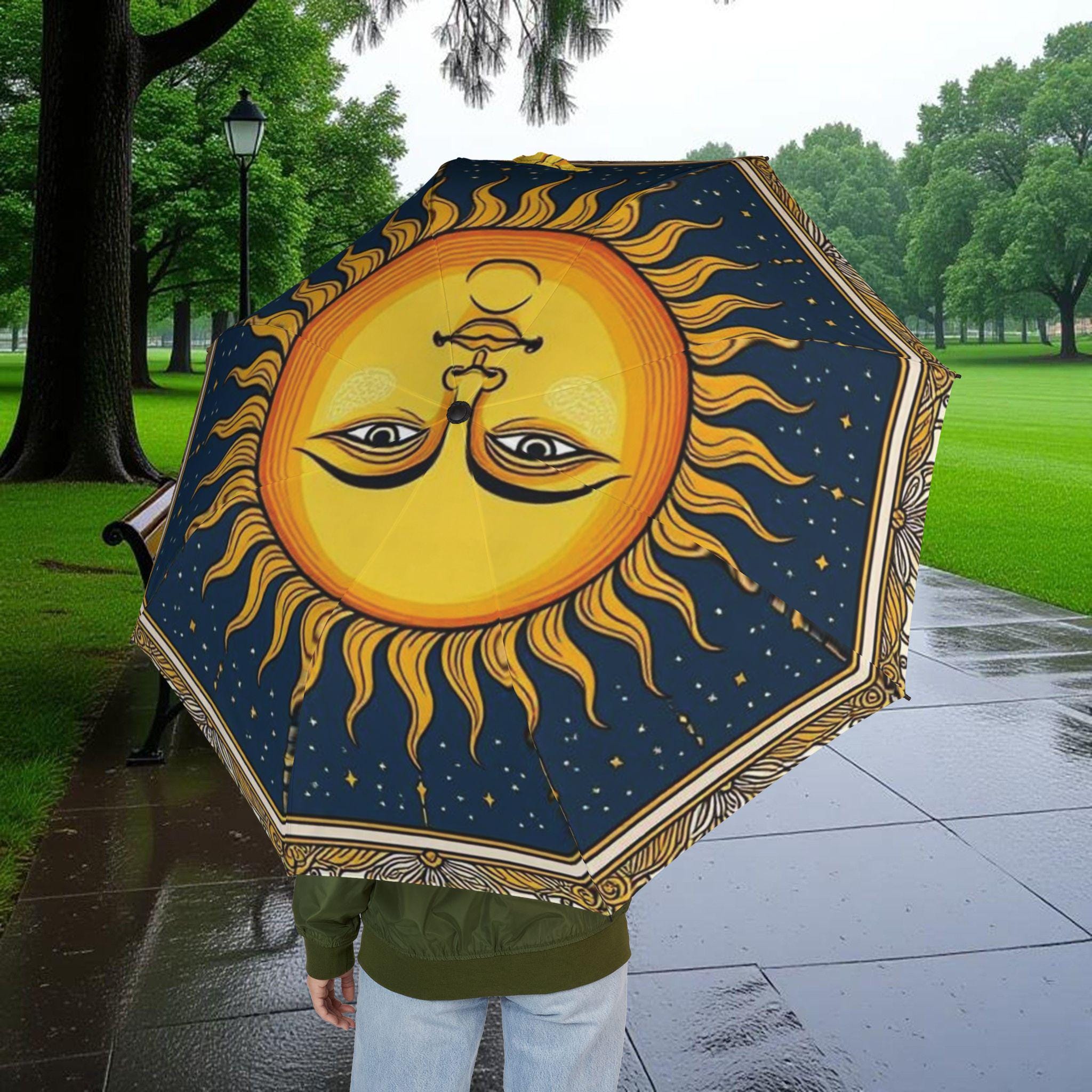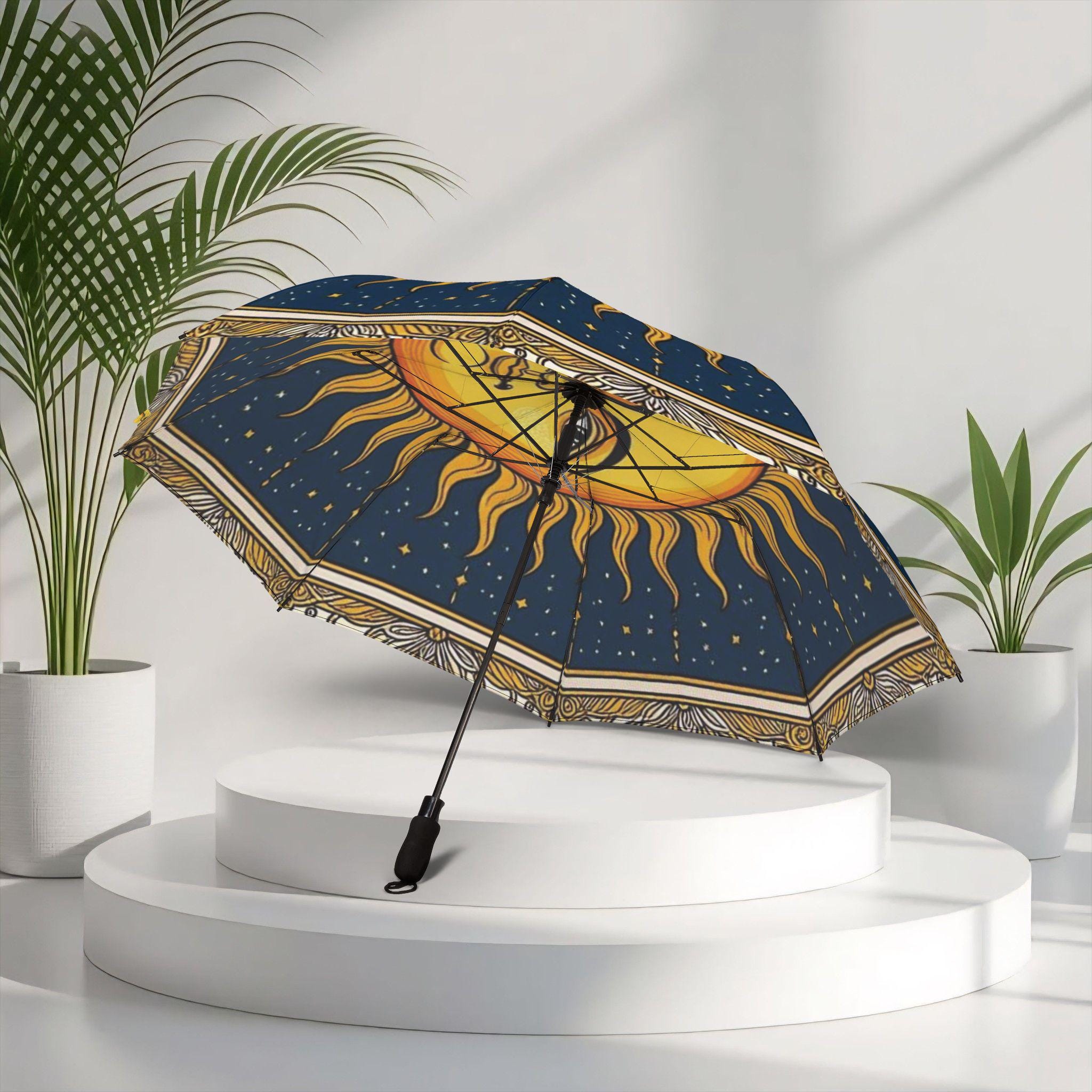 An esoteric sun umbrella that provides a unique and stylish way to shield yourself from the elements. This umbrella is perfect for those who appreciate trendy and artistic accessories, and it is ideal for adding a touch of flair to your daily routine. Great for sunny days, rainy weather, and even for special occasions like music festivals and outdoor events.