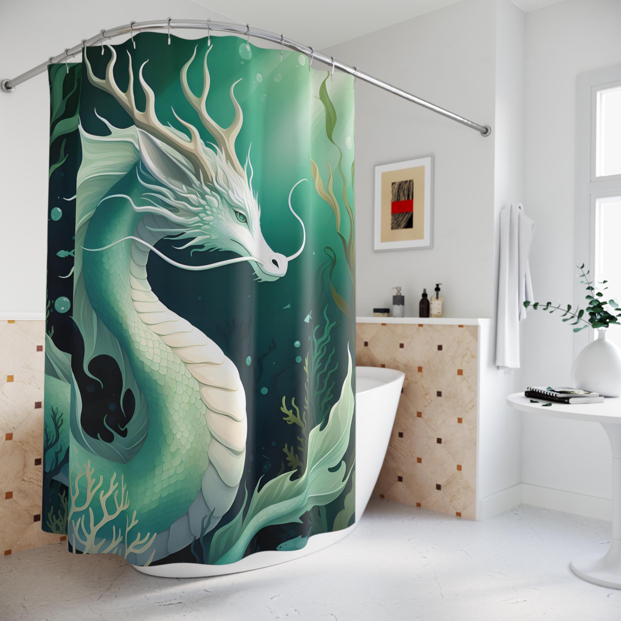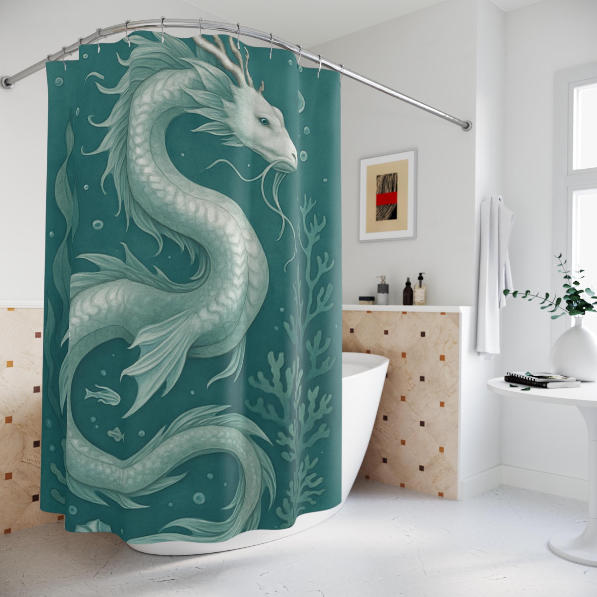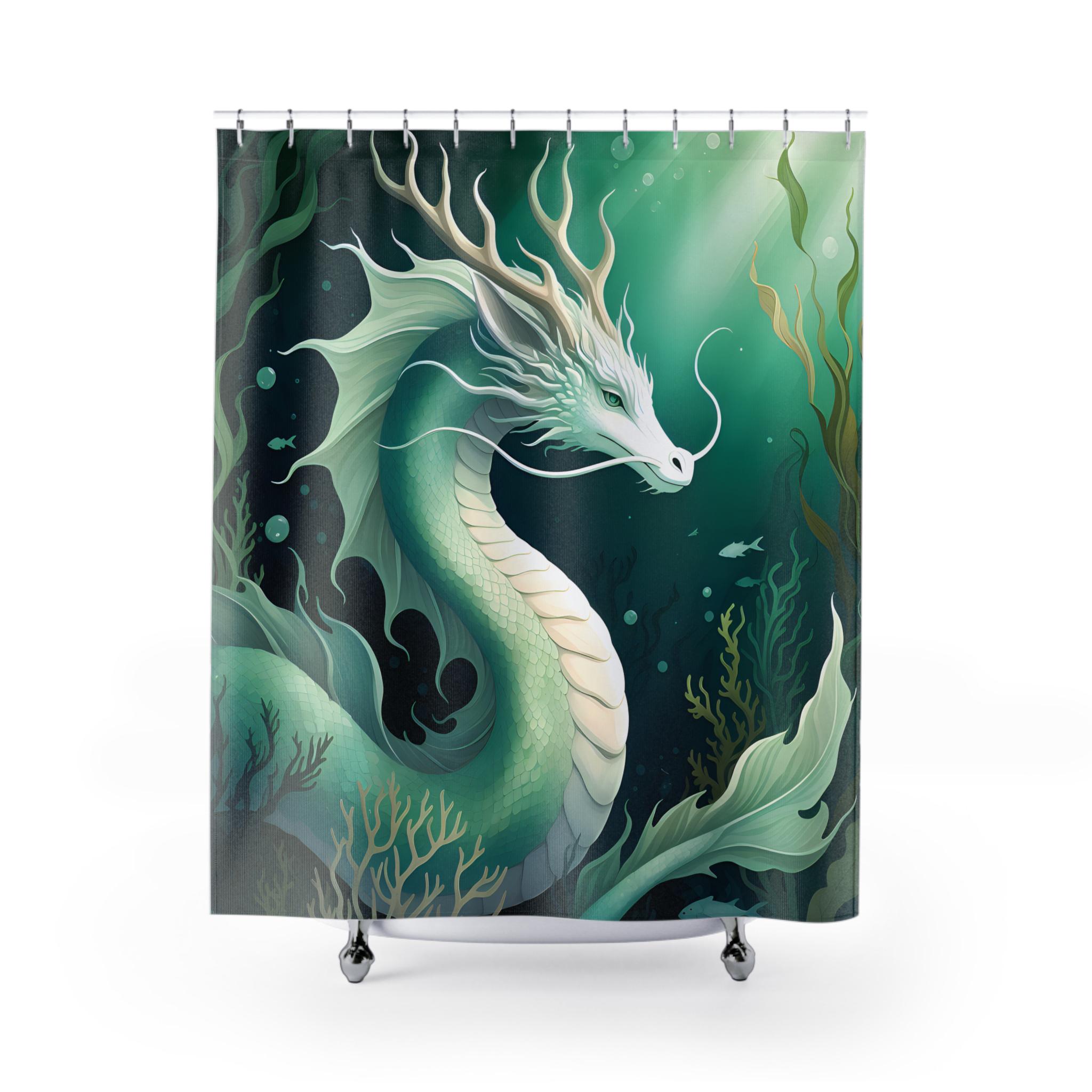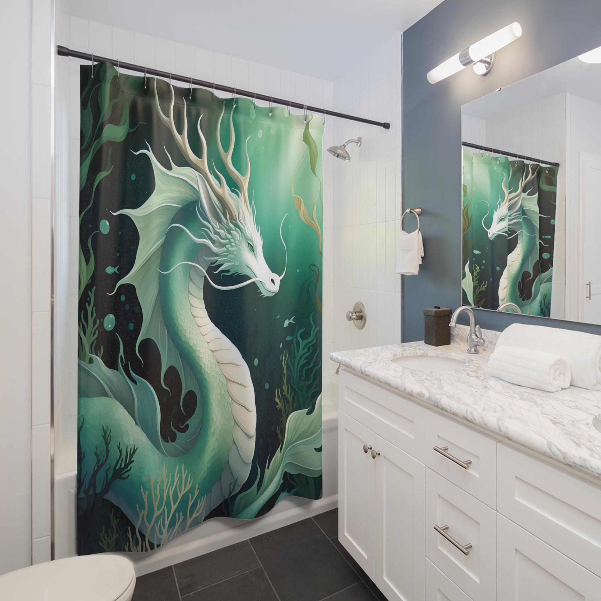 Bring a touch of aquatic magic into your bathroom with this water dragon themed shower curtain. Perfect for adults who love mystical creatures and ocean themes. Ideal for decorating your bathroom during Halloween, costume parties, or fantasy-themed events.