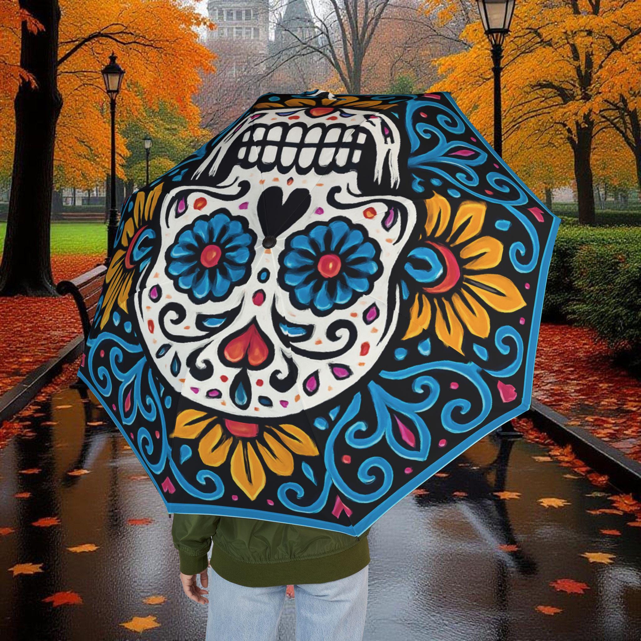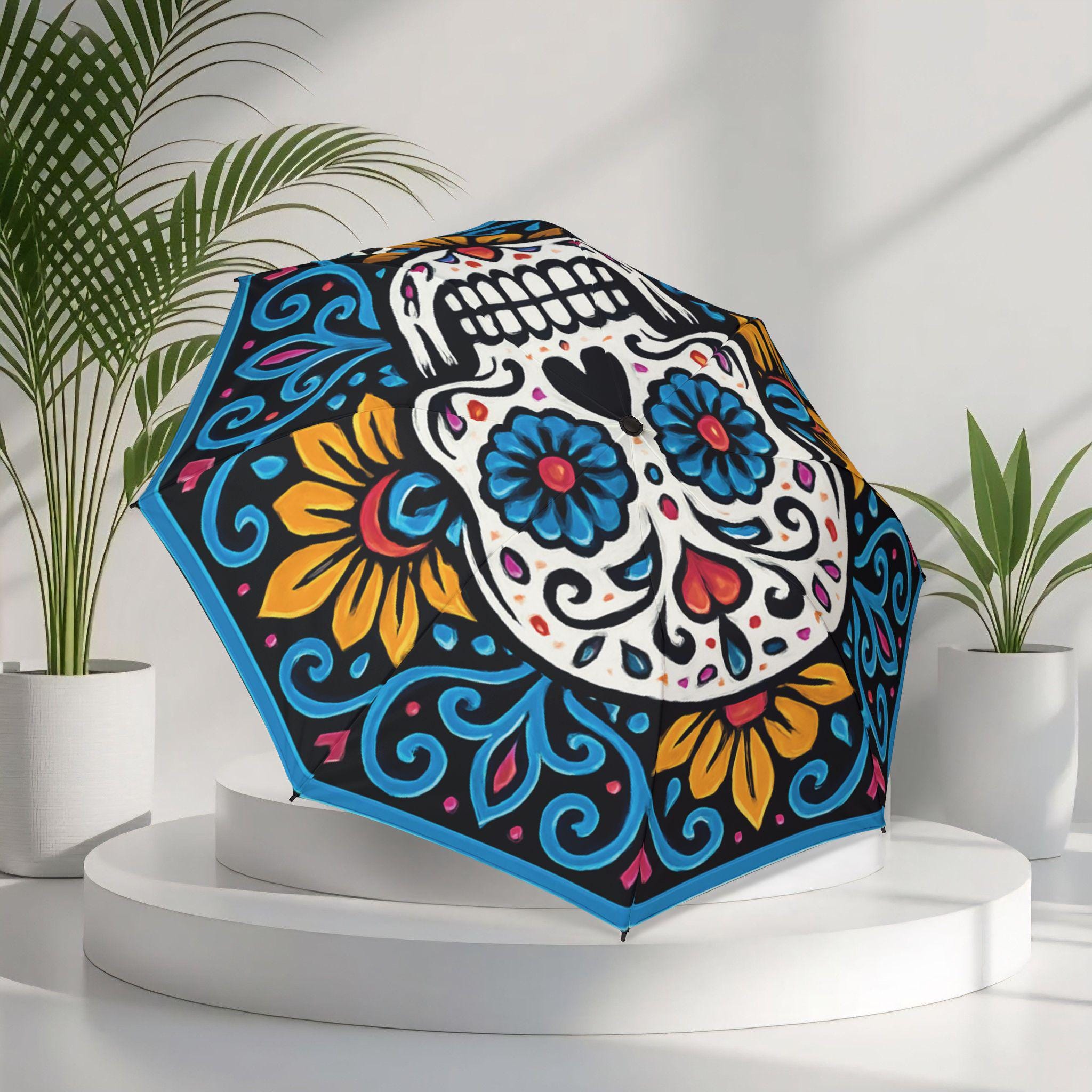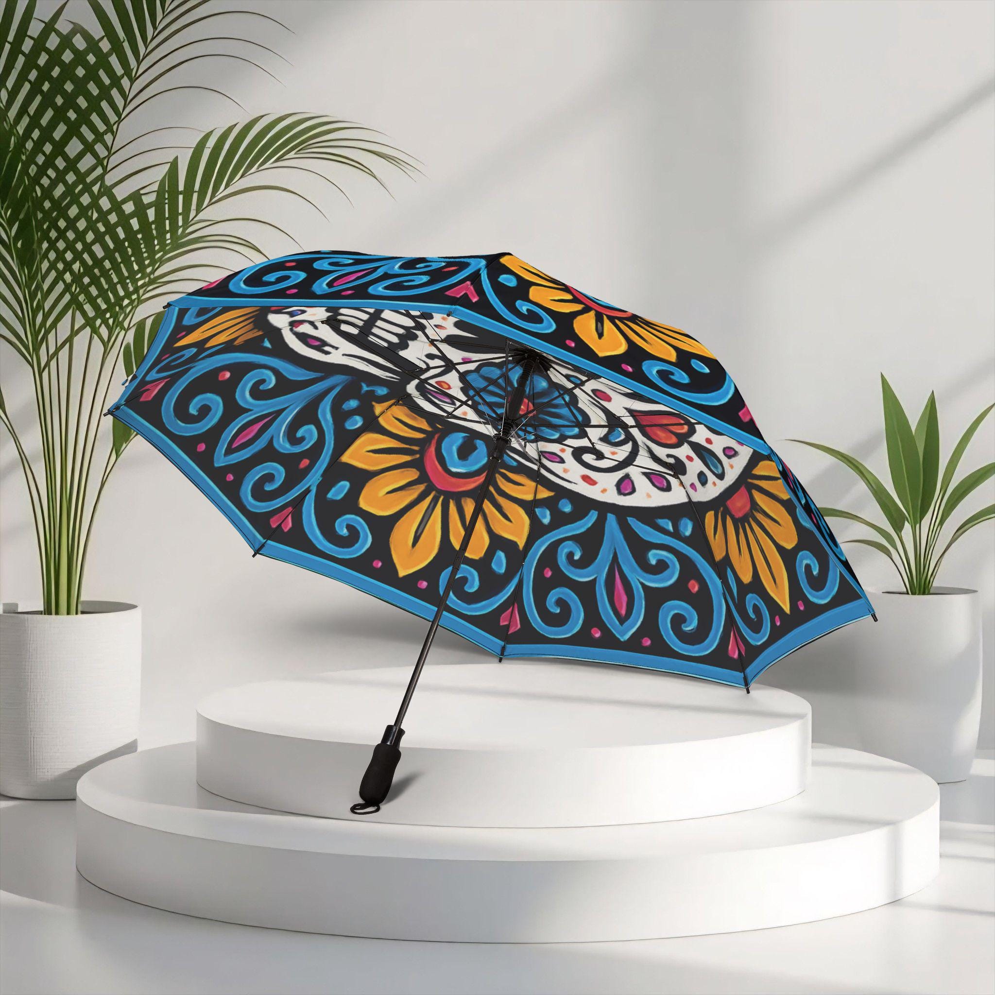 Stay dry in style with this calavera-themed umbrella. Perfect for those who enjoy a touch of the macabre in their accessories. Ideal for Day of the Dead celebrations and rainy days.
