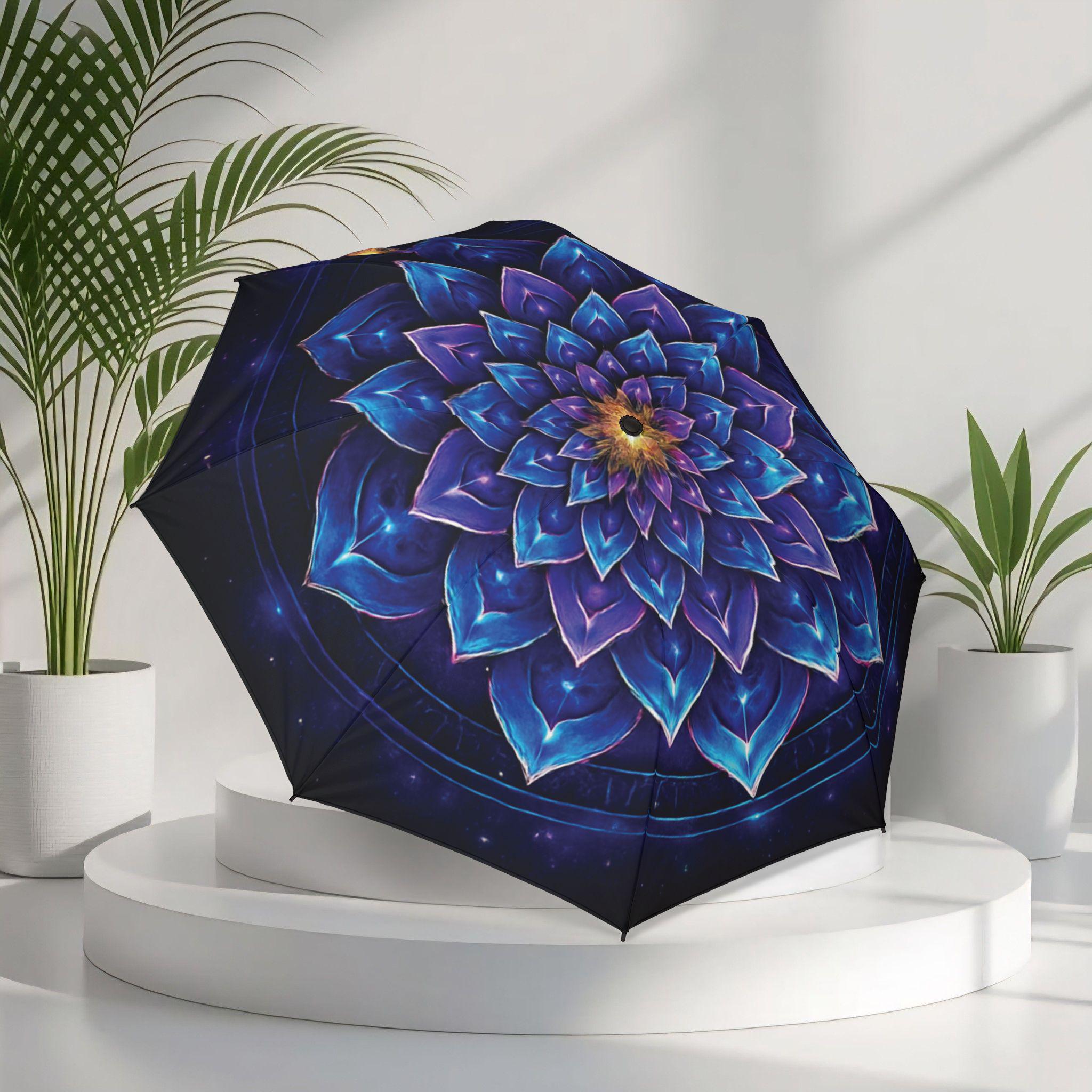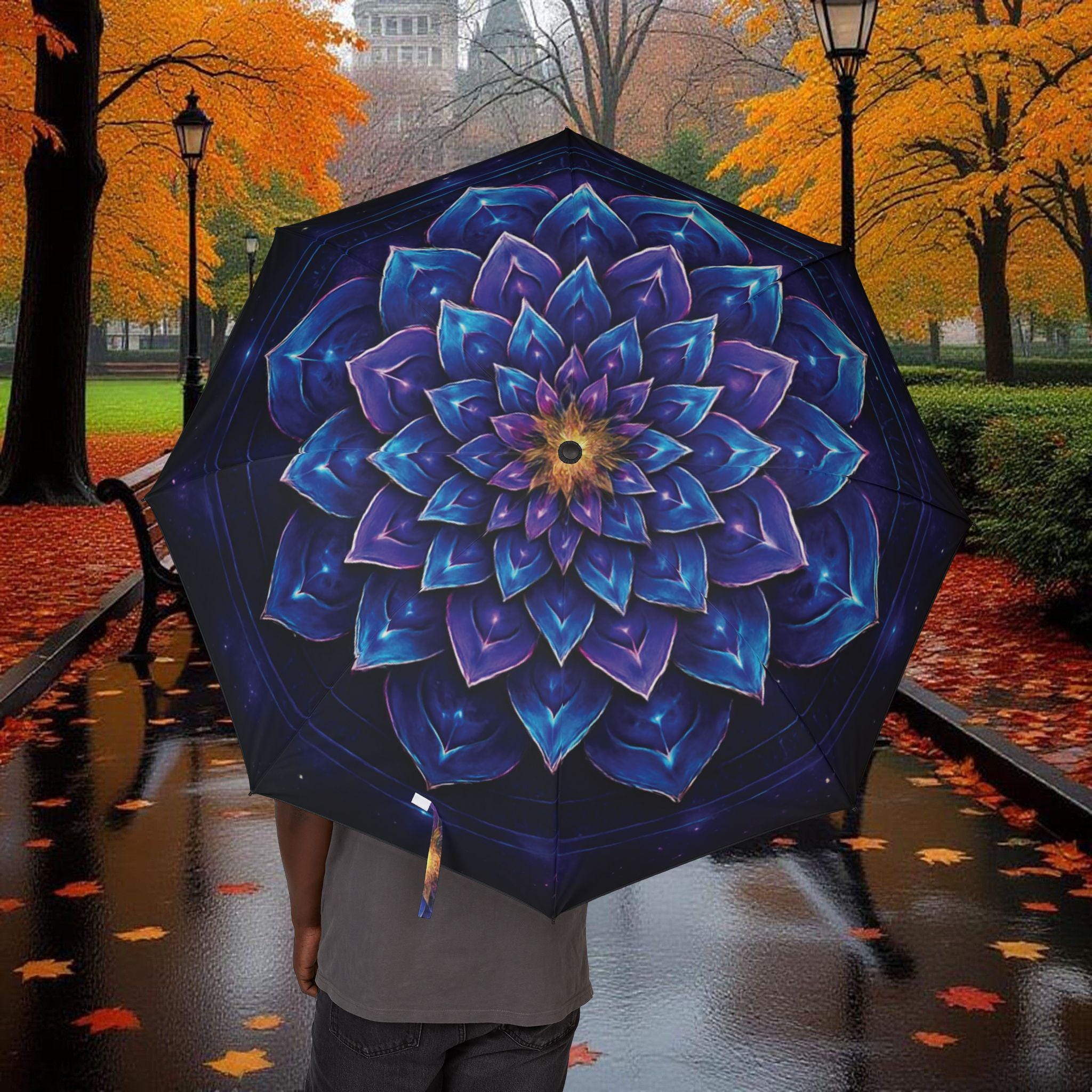 Stay dry in style with this Cosmic Lotus Umbrella, featuring a unique and vibrant design. Perfect for those who love space-themed accessories and want to brighten up a rainy day. Ideal for gifting during birthdays, holidays, and special occasions.