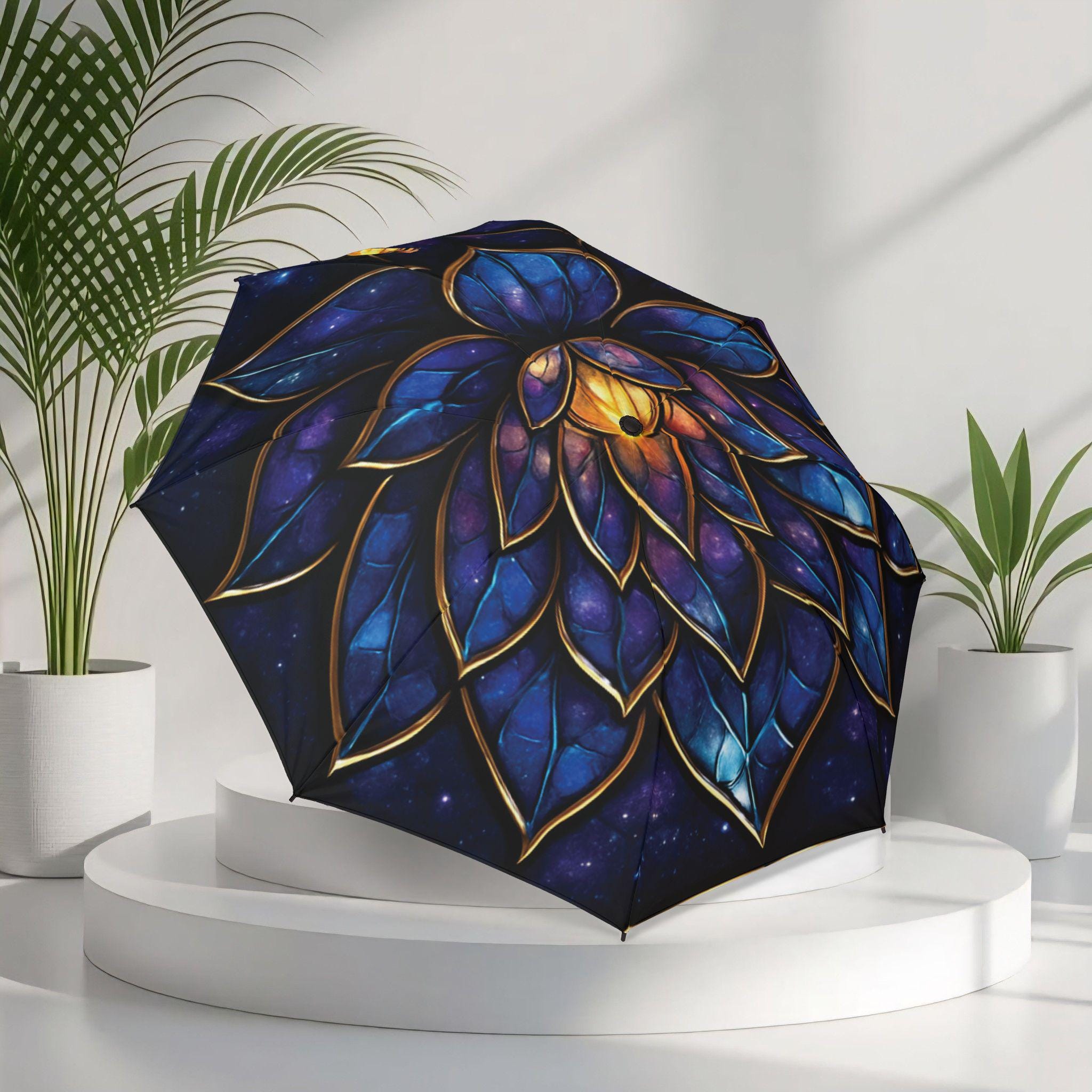 This cosmic lotus umbrella gives off a mystical and serene vibe. Perfect for those who appreciate unique and artistic designs. Ideal for those looking to stay dry in style during rainy days or to add a pop of color to their outfit. Relevant for gift-giving occasions such as birthdays, Mother's Day, or as a thoughtful thank you gift.