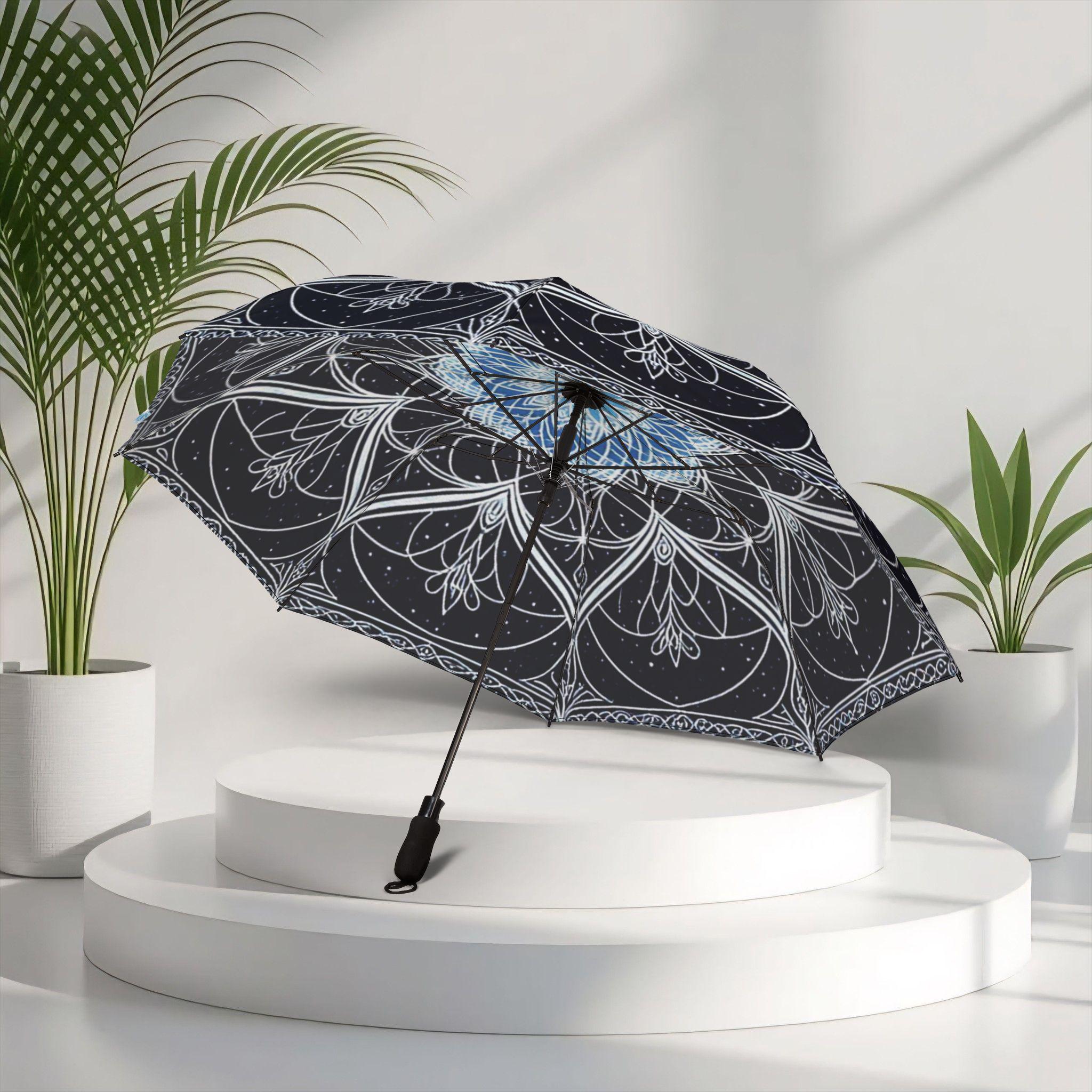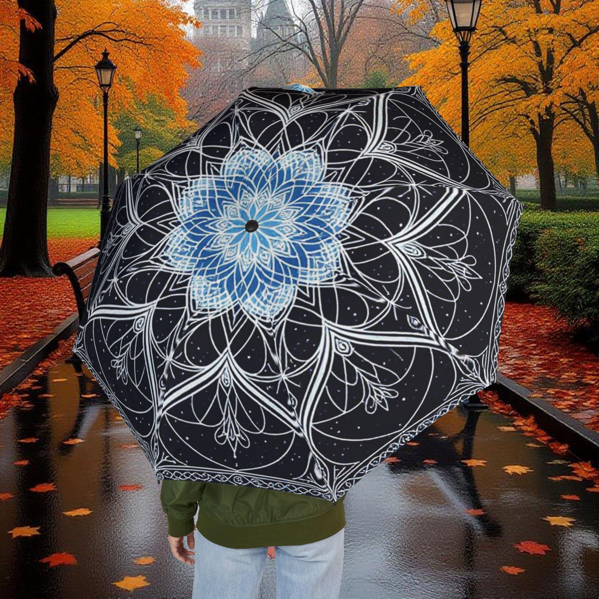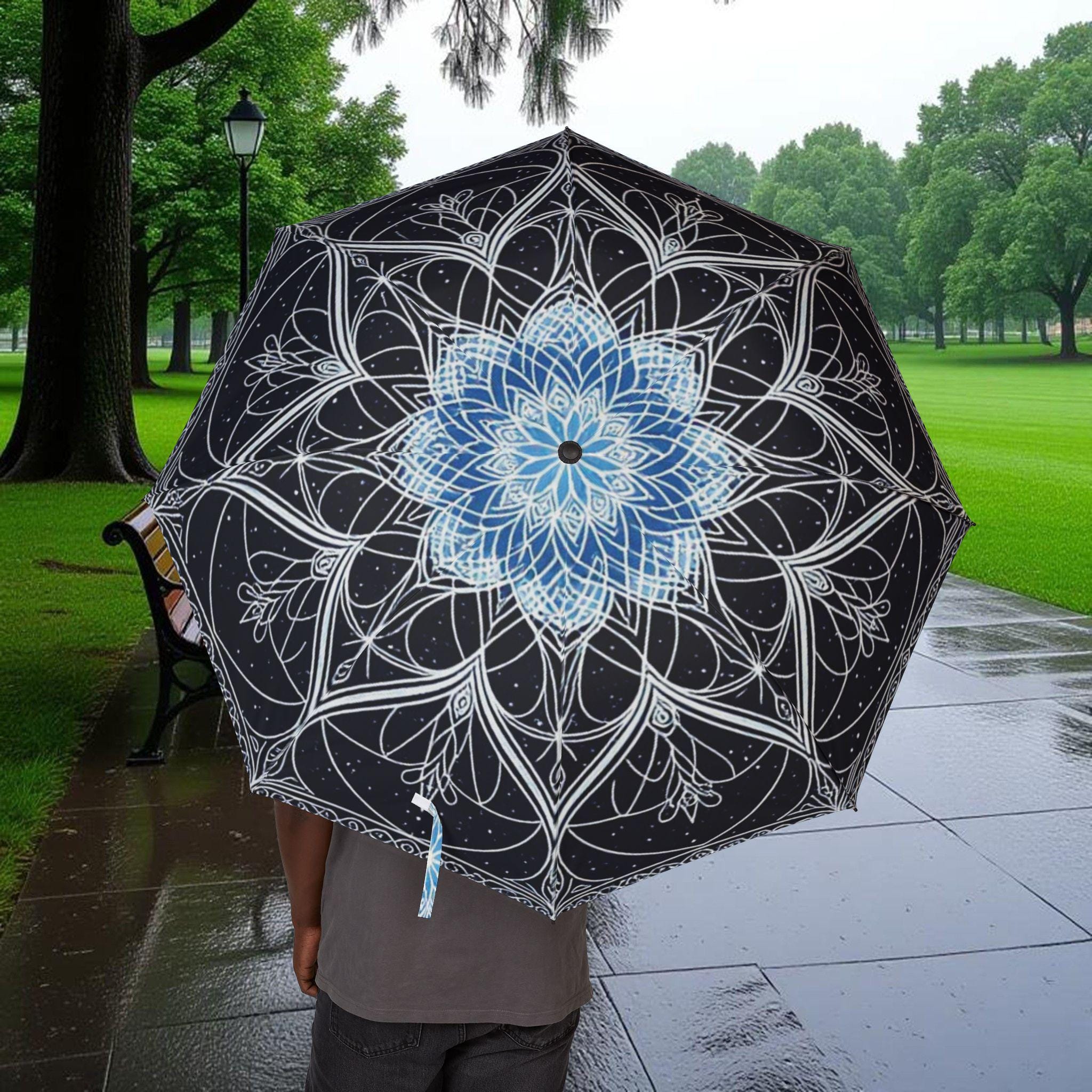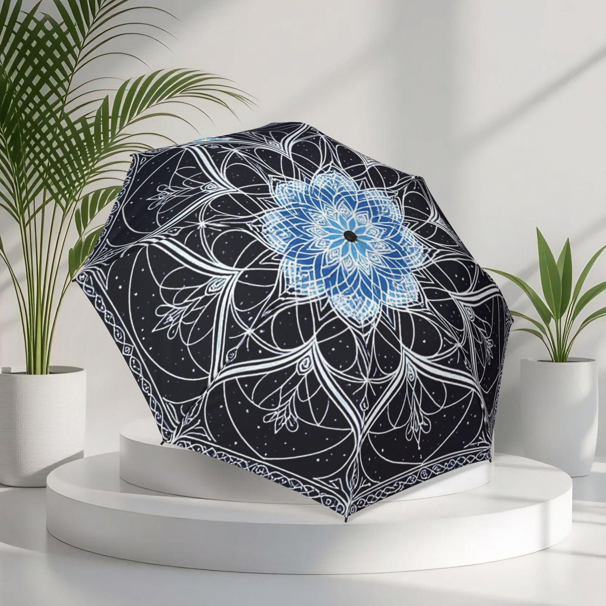 A stunning geometric mandala umbrella that is both stylish and functional. This umbrella is perfect for those who appreciate intricate designs and want to add a touch of elegance to their rainy day outfit. It opens with semi-automatic operation, providing convenience for one-handed use. Perfect for those who enjoy unique and eye-catching accessories, this umbrella is ideal for spring showers and summer storms.