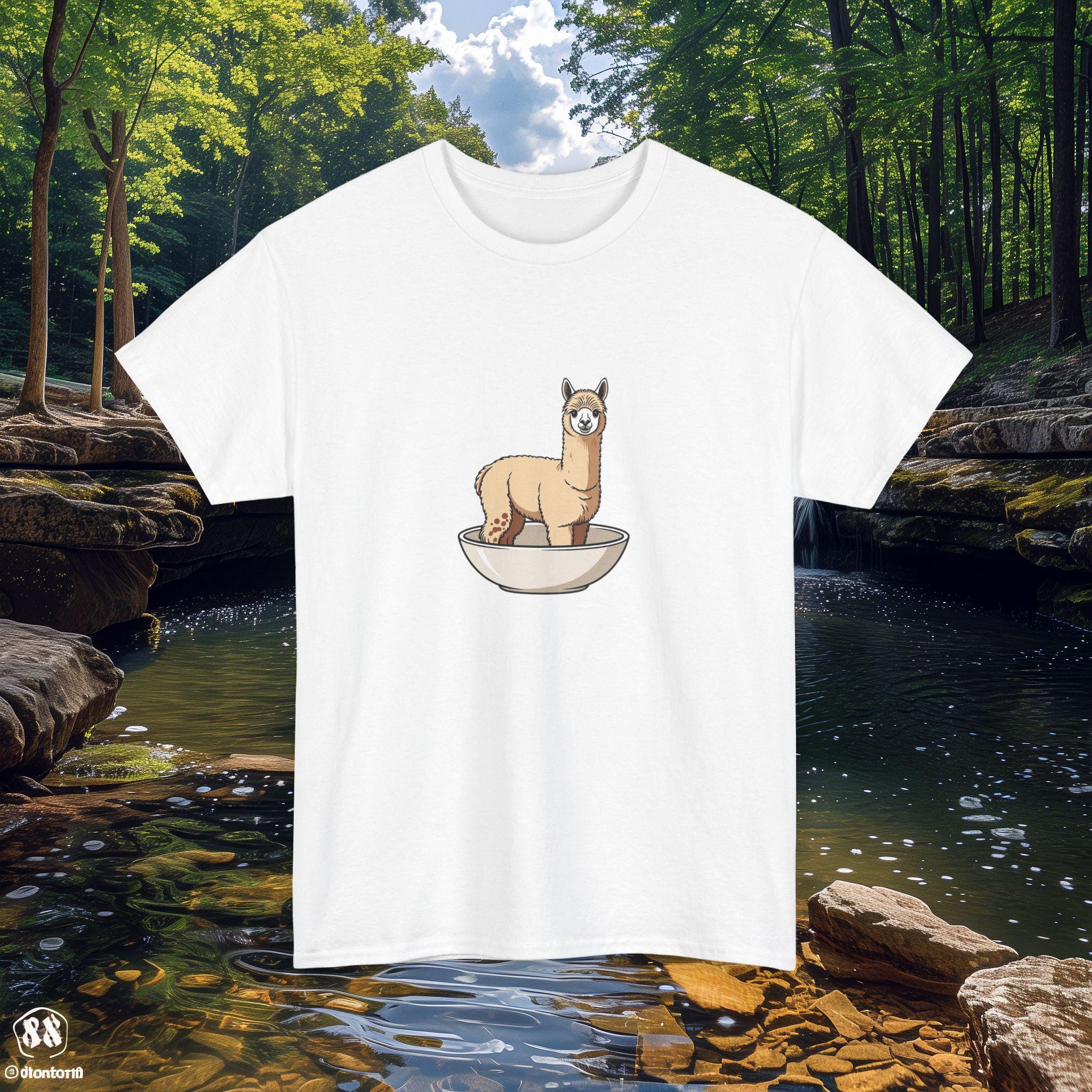 This soft, classic tee carries a playful hand-drawn alpaca perched inside a cozy ceramic bowl — a little slice of whimsical charm that feels like a quiet smile on a busy day. Lightweight but sturdy, the shirt moves with you: layered under a cardigan during slow coffee mornings, pulled on for a weekend market run, or worn while sketching and daydreaming at home. The gentle sketch lines and low-key placement make the design feel personal, the kind of piece you reach for when you want clothes that say something gentle and oddball without shouting. It’s for people who collect small joys: animal lovers, makers, and anyone who keeps a soft spot for quirky, tactile things. The fabric’s smooth print surface keeps the alpaca crisp wash after wash, while the breathable cotton and relaxed cut let you stay comfortable through long creative sessions or relaxed hangs. Bring a little cozy humor into the everyday — quiet, sweet, and undeniably yours.