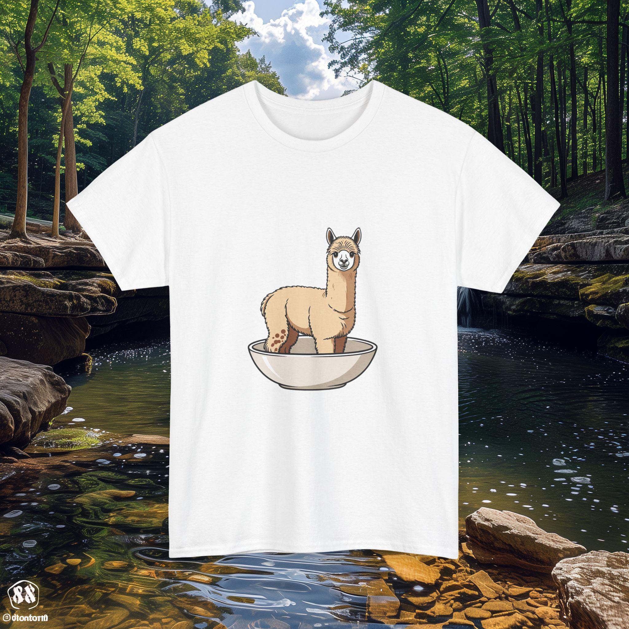 This soft, classic tee carries a playful hand-drawn alpaca perched inside a cozy ceramic bowl — a little slice of whimsical charm that feels like a quiet smile on a busy day. Lightweight but sturdy, the shirt moves with you: layered under a cardigan during slow coffee mornings, pulled on for a weekend market run, or worn while sketching and daydreaming at home. The gentle sketch lines and low-key placement make the design feel personal, the kind of piece you reach for when you want clothes that say something gentle and oddball without shouting. It’s for people who collect small joys: animal lovers, makers, and anyone who keeps a soft spot for quirky, tactile things. The fabric’s smooth print surface keeps the alpaca crisp wash after wash, while the breathable cotton and relaxed cut let you stay comfortable through long creative sessions or relaxed hangs. Bring a little cozy humor into the everyday — quiet, sweet, and undeniably yours.