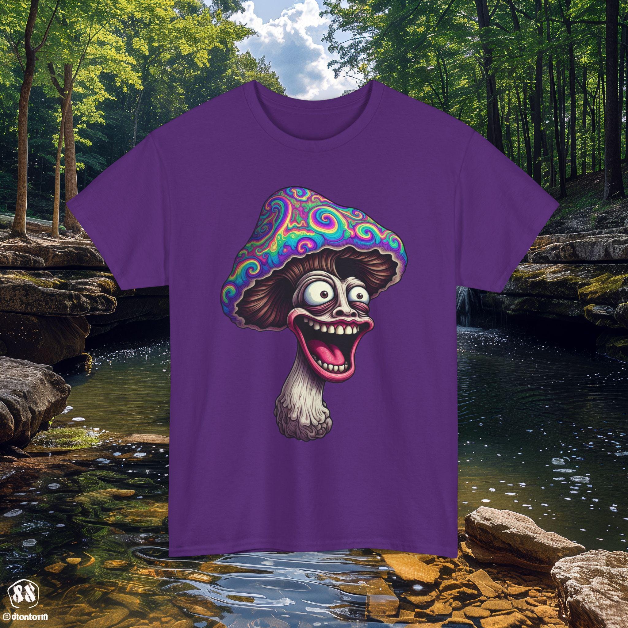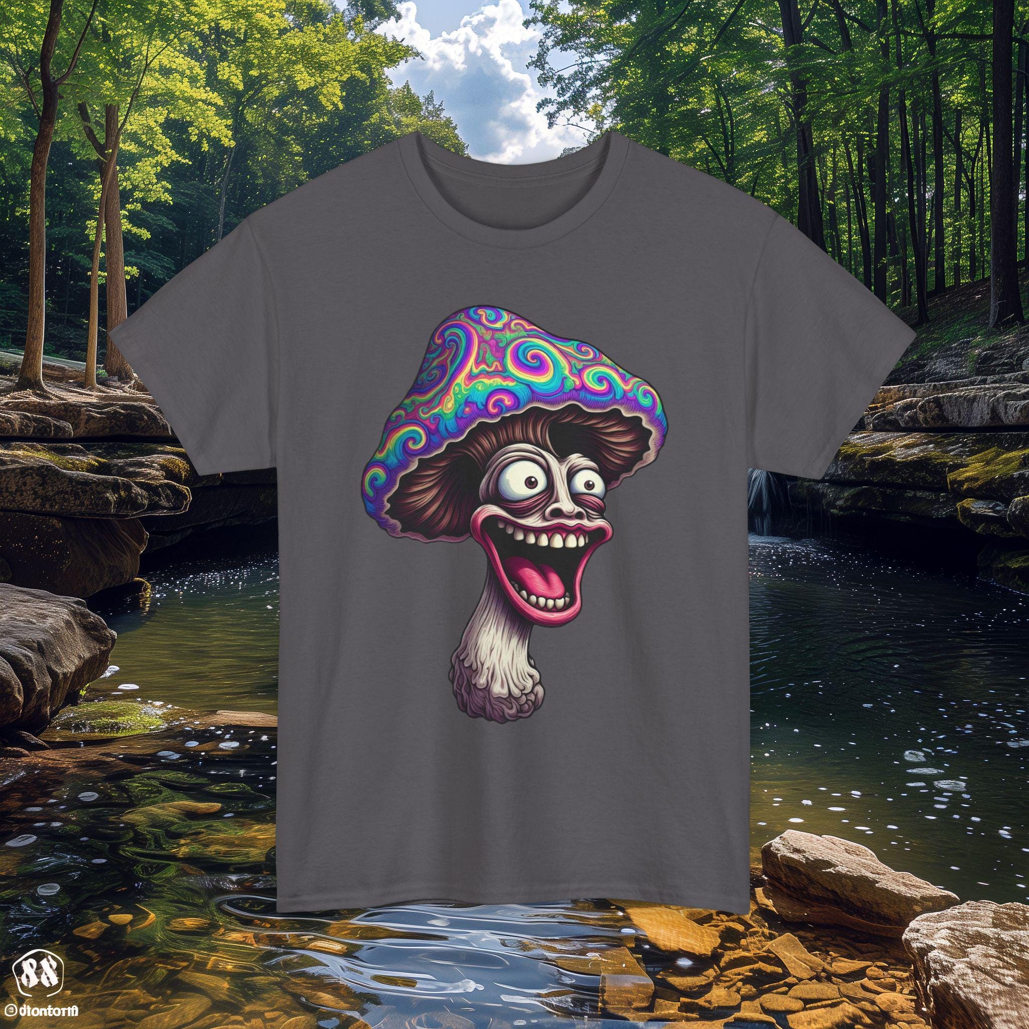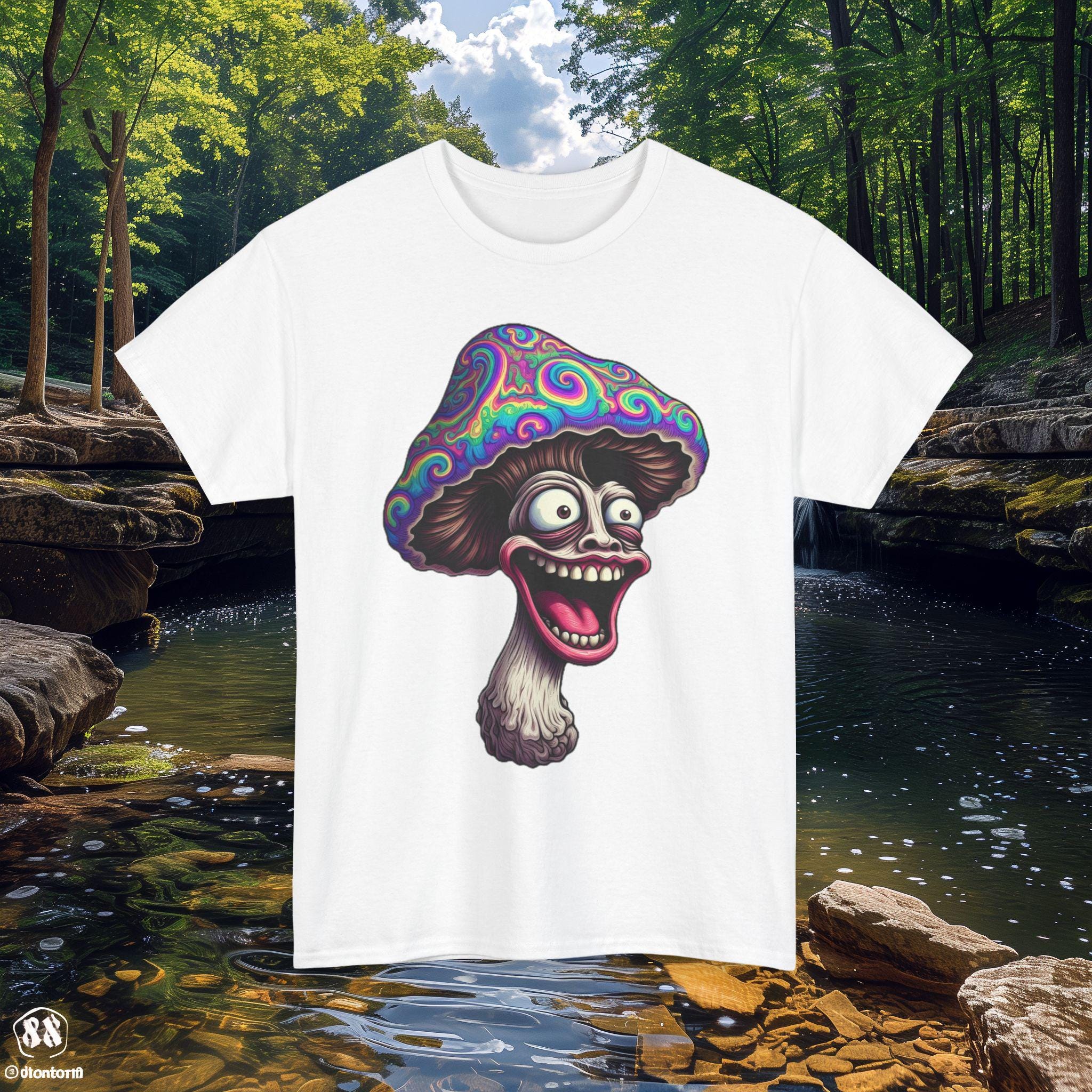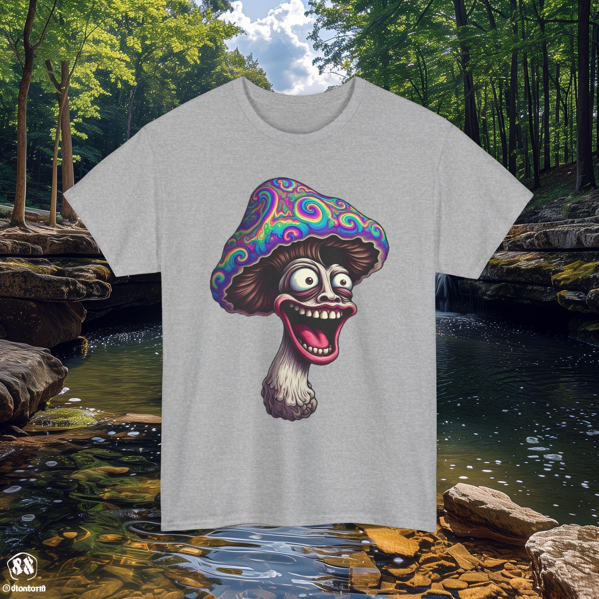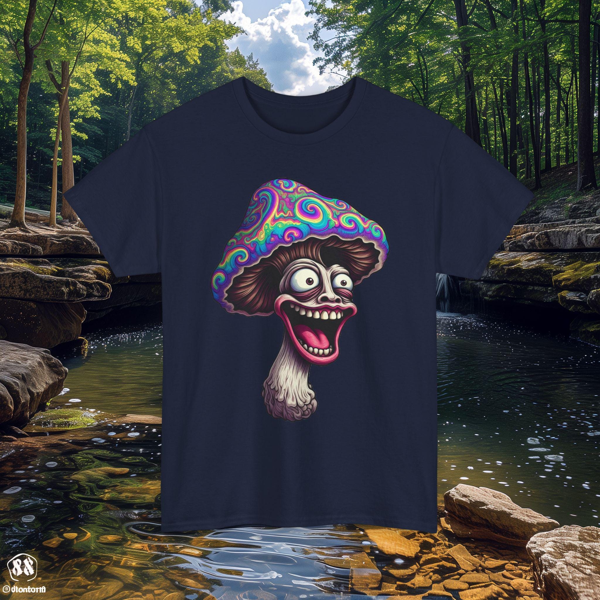 This tee carries a playful, slightly trippy energy — a laughing psychedelic mushroom printed in vibrant, detailed inks that feel alive on the shirt. Imagine slipping it on and instantly tapping into a relaxed, artsy mood: colors ripple, details pop, and the whole vibe reads like a small, wearable piece of underground art. It’s for people who collect oddities, show up to music nights with a wink, or simply want clothing that sparks conversation. The soft yet sturdy cotton sits comfortably for long days and late-night gatherings alike, while the clean crew neck and classic cut keep the look effortless. Wear it to casual meetups, record-store dives, art shows, or cozy hangouts where the small things — a laugh, a shared reference, a nod to the weird — matter most.