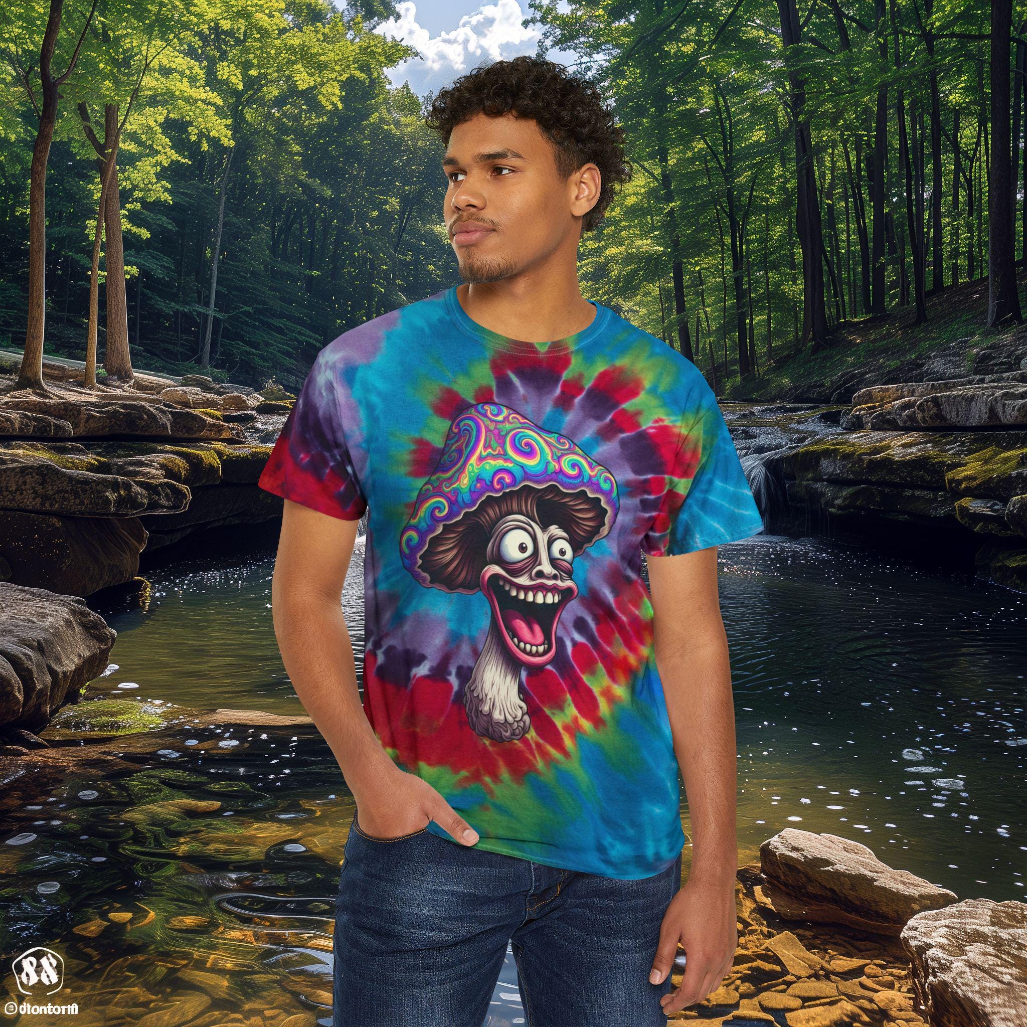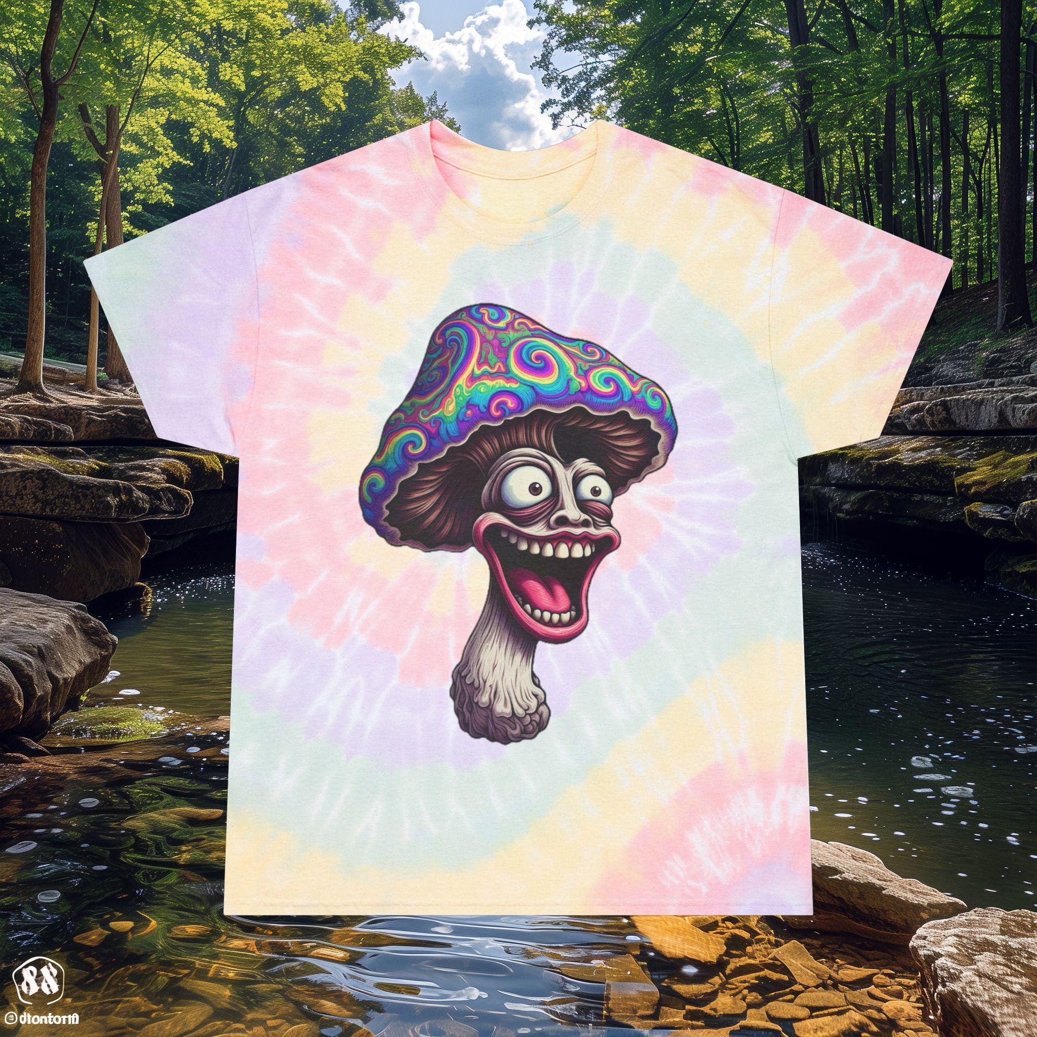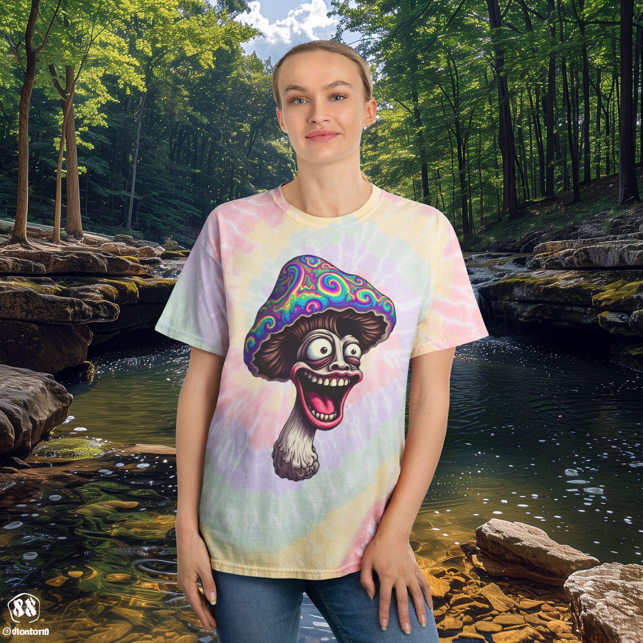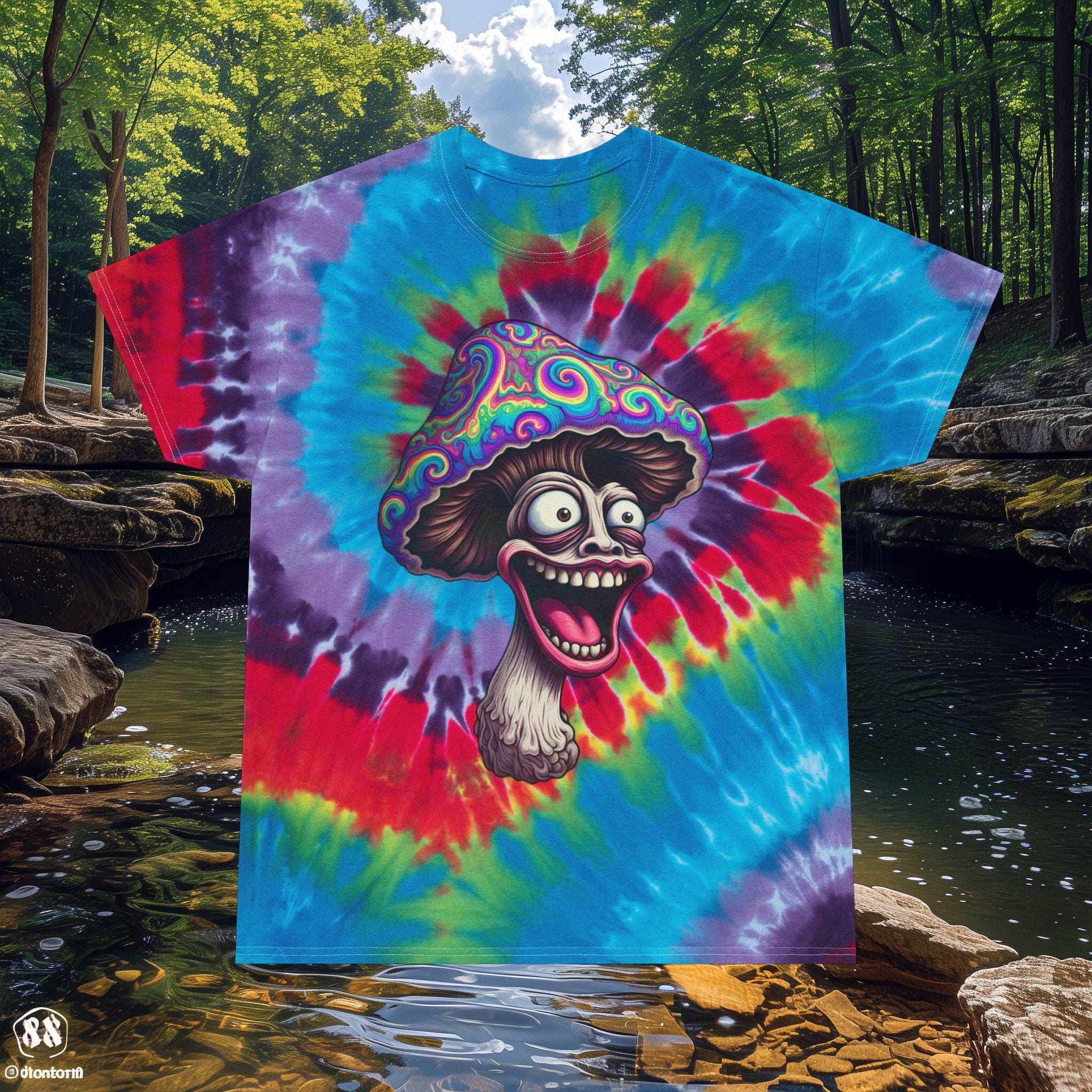 Bright, playful, and a little bit wild — this tie-dye tee brings a laughing psychedelic mushroom front-and-center, spiraling color across the fabric. It feels like an afternoon at an outdoor show: sun-warmed cotton, loud colors, and a grin that won’t quit. Wear it to backyard gatherings, art markets, or while wandering festivals; it settles into the rhythm of anyone who lives for color, creativity, and a touch of counterculture. The medium-weight cotton holds the print crisply while the classic fit keeps movement easy. Expect slight color shifts in the dye pattern — each shirt is its own little experiment.